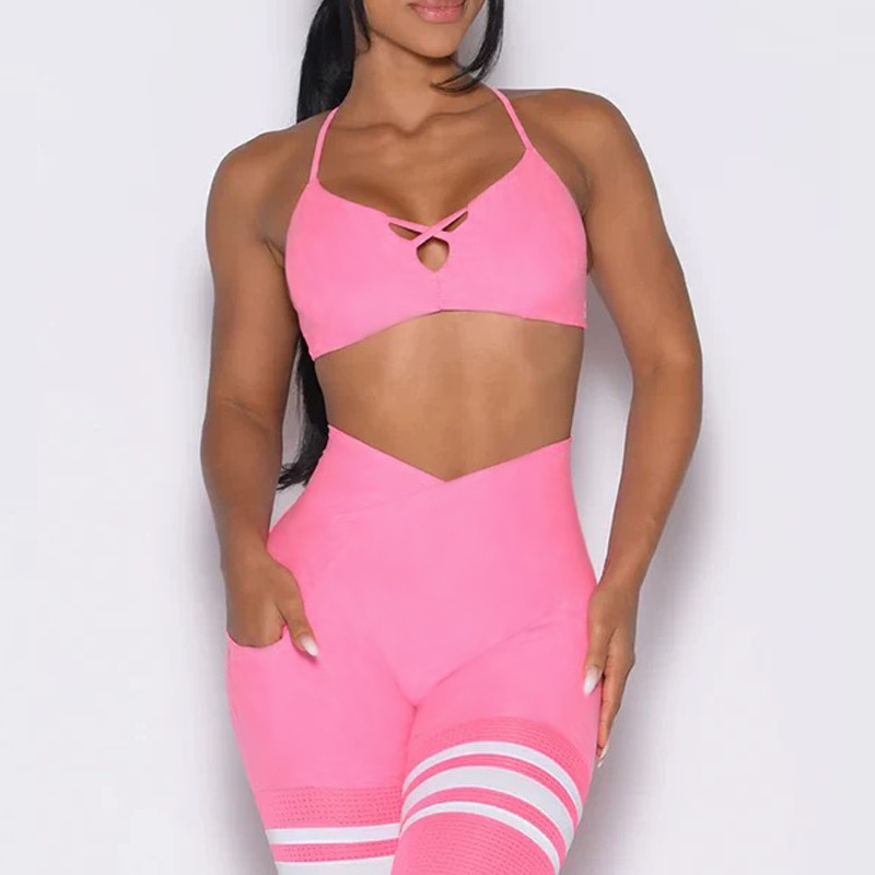 가슴 패드 버튼 디자인 스포츠 브라가있는 여성용 새로운 국경 간 섹시 할로우 가슴 노출 홀터넥 아름다운 등 요가 브라스토어 가기