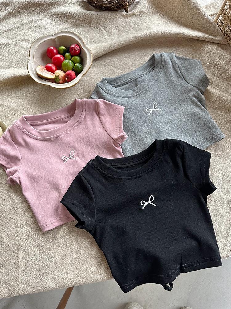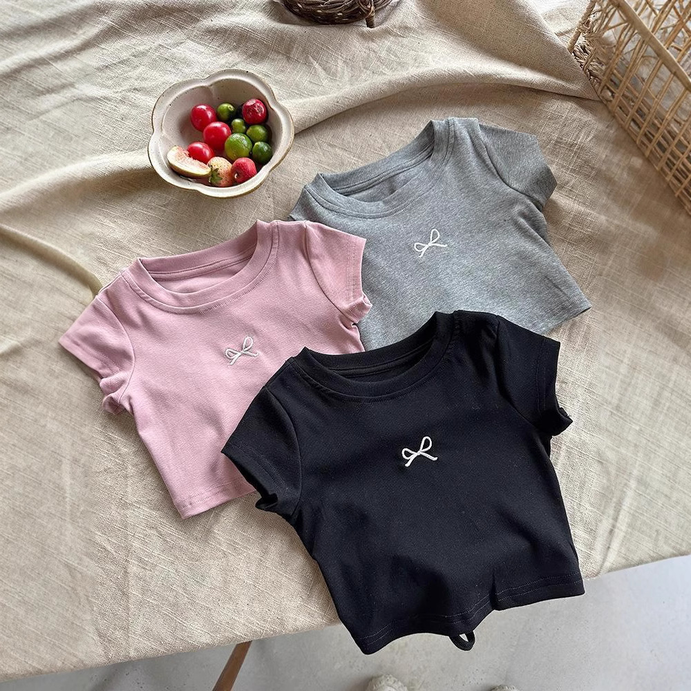 여자 여름 반팔 티셔츠 아기 세련된 어린이 성격 유행 활 자수 유행 사이버 축하 백리스 반팔 티셔츠스토어 가기