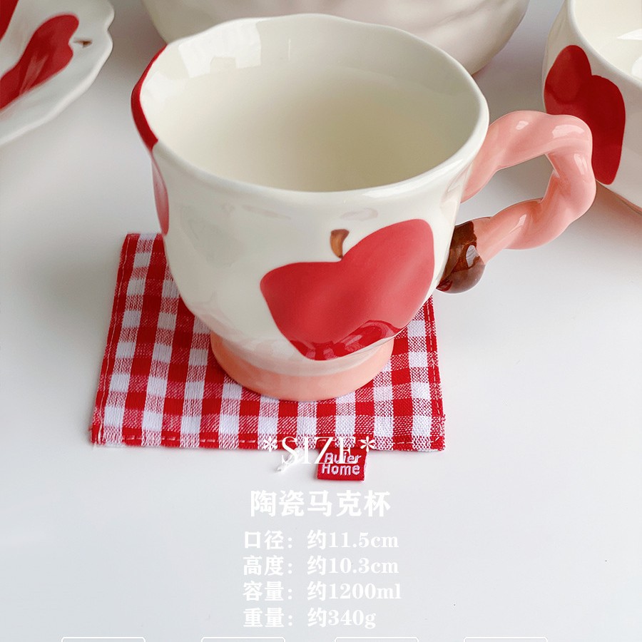 높은 얀 가치 레드 애플 세라믹 식기 쌀 그릇 국수 그릇 접시 큰 수프 그릇 물 컵 귀여운 디저트 그릇스토어 가기