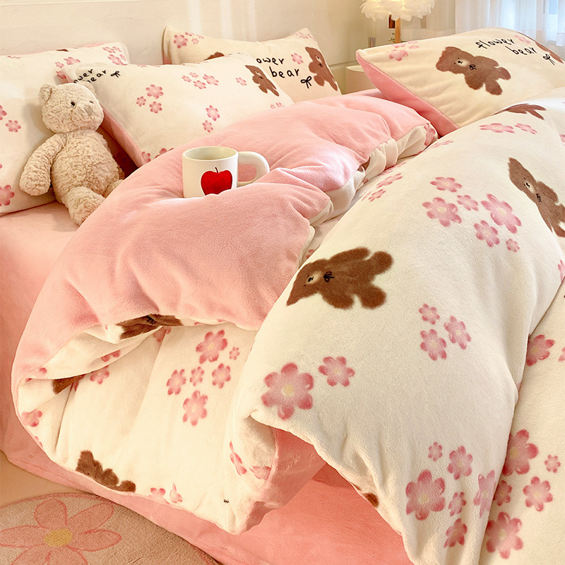 겨울 산호 우유 벨벳 이불 커버 단일 조각 두꺼운 따뜻한 양면 플란넬 기숙사 이불 커버스토어 가기