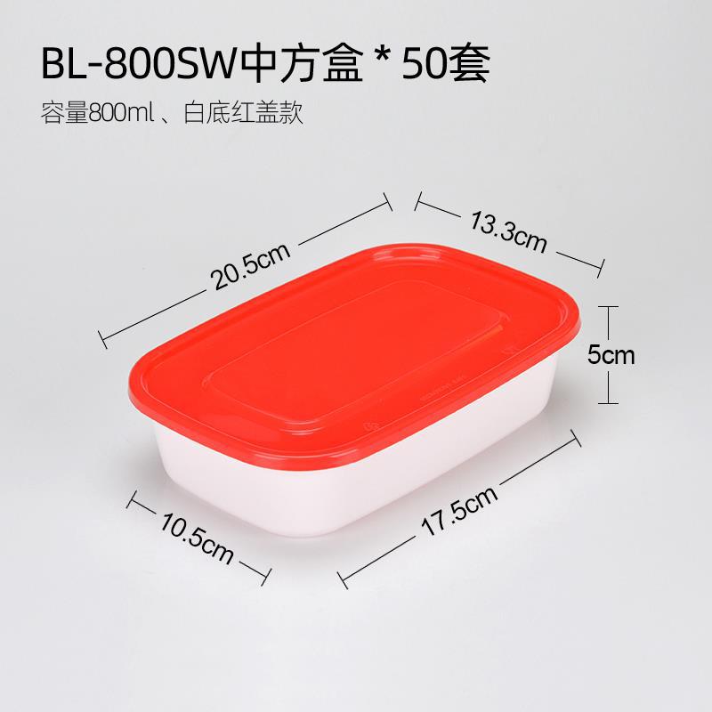• 흰색 바탕과 빨간색 뚜껑이 있는 800ml 정사각형 상자 50세트(두꺼워짐)✦✦