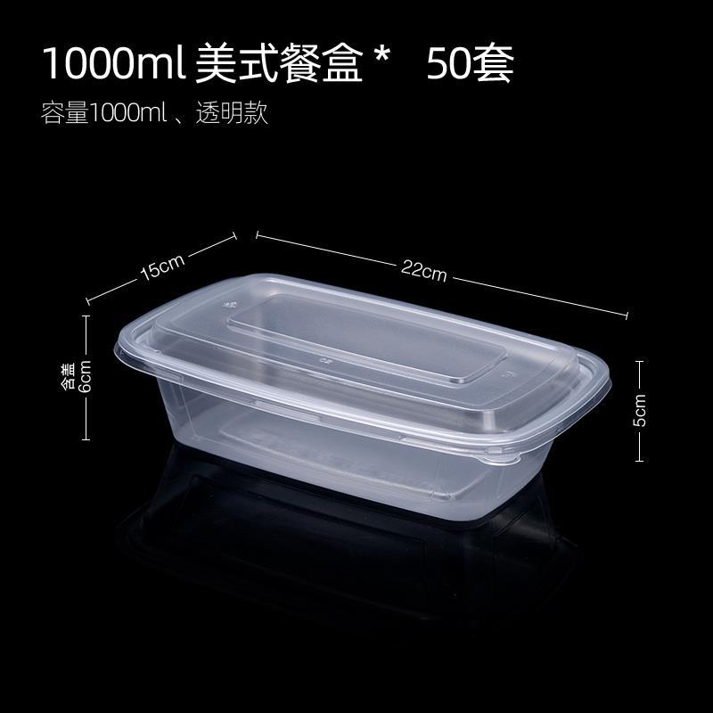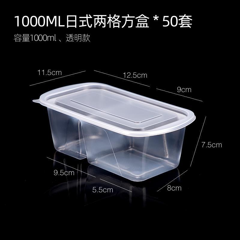 • 1000ml 투명 단일 격자 사각형 상자 50 세트✦✦