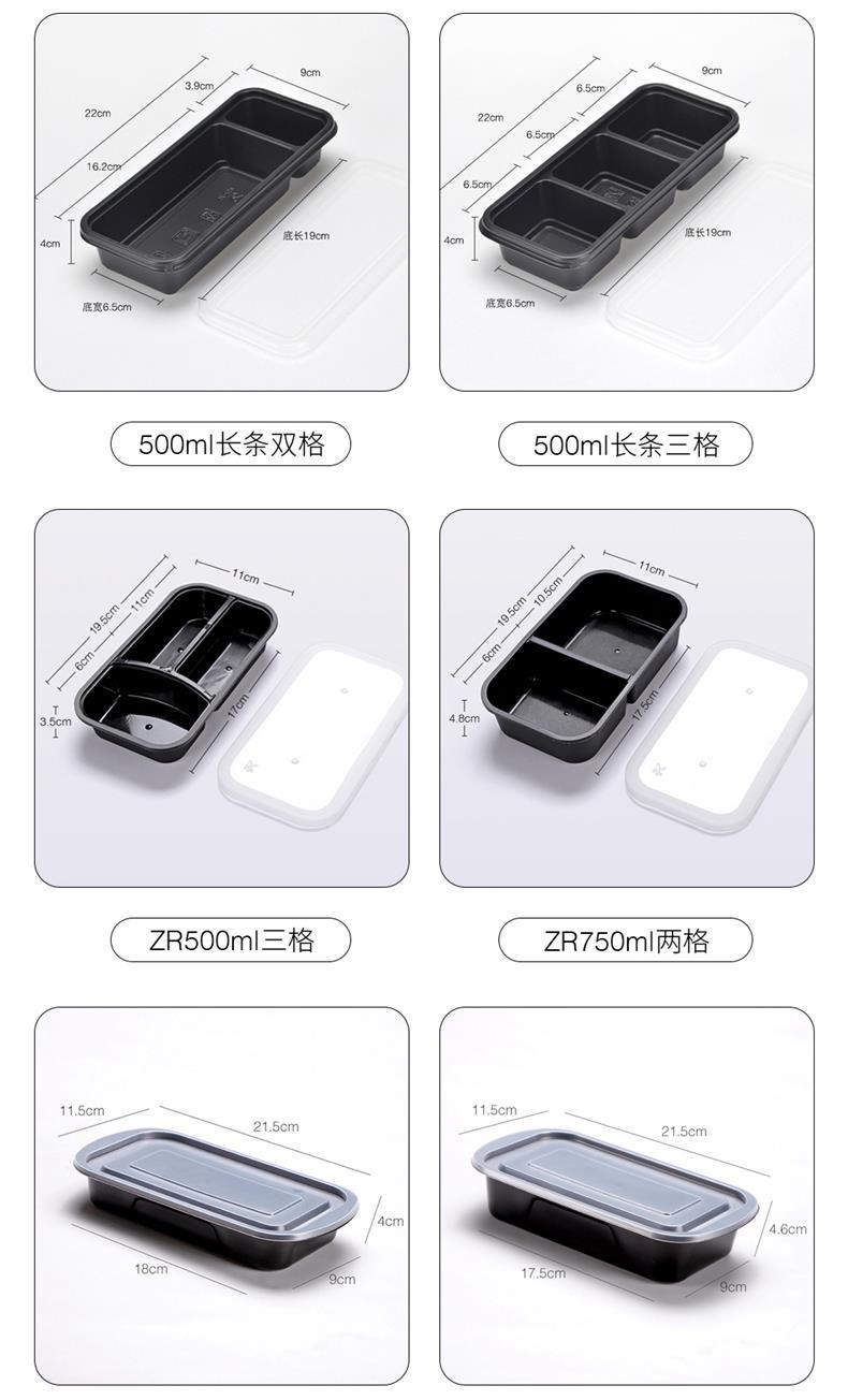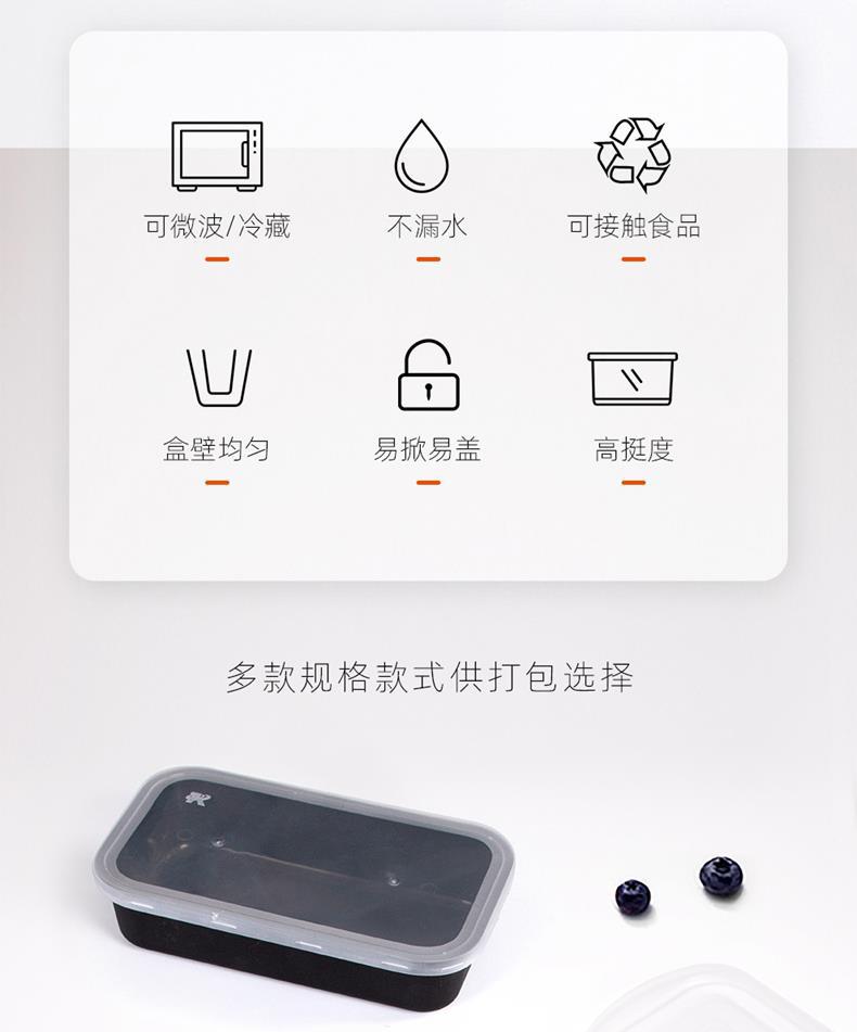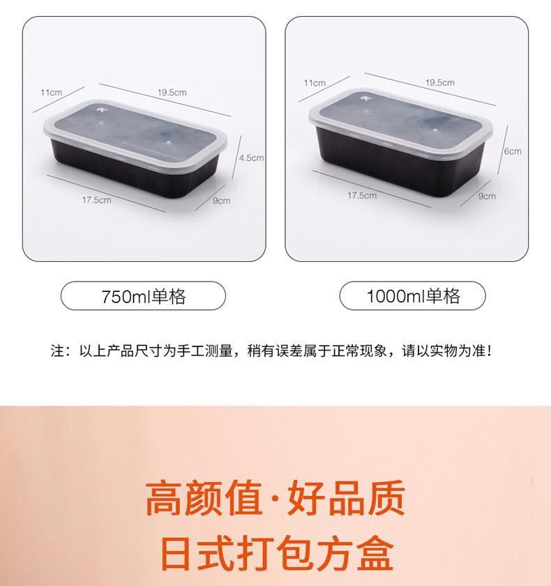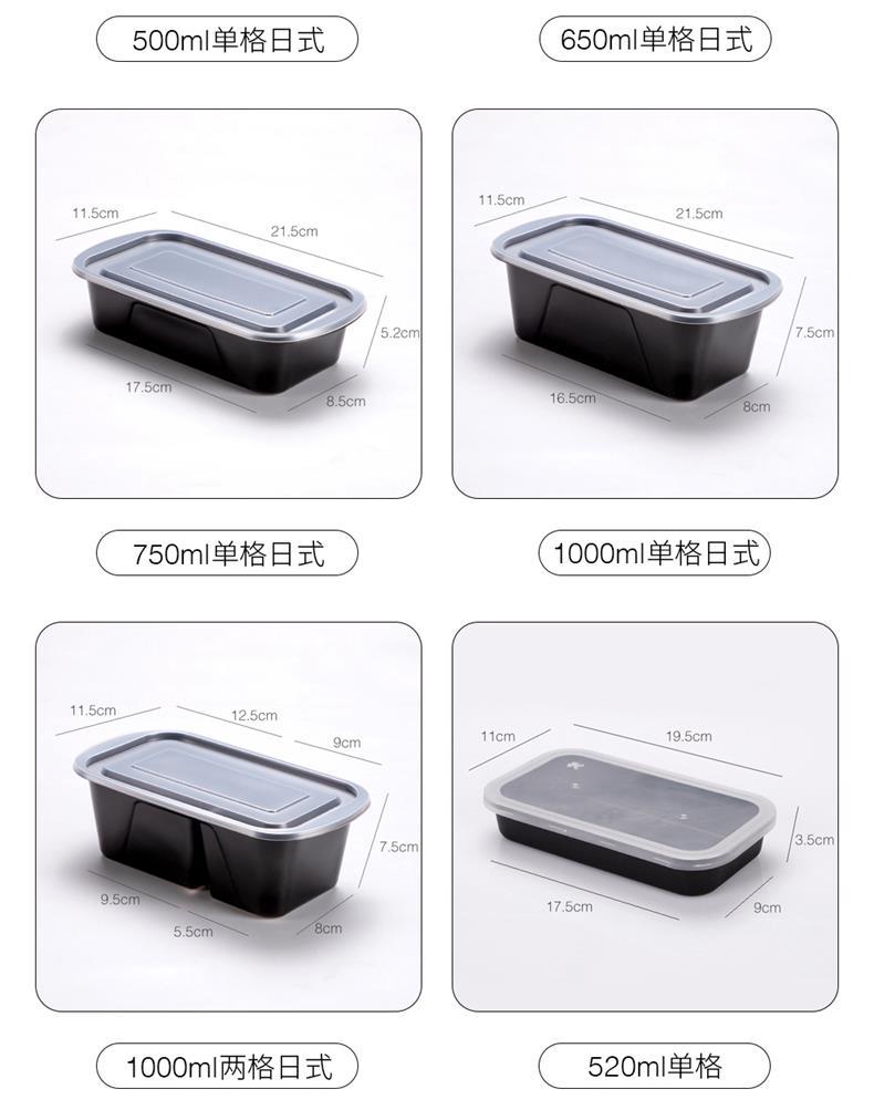 • 750ml 검정색 단일 구획 사출 성형 사각형 상자 40 세트✦✦