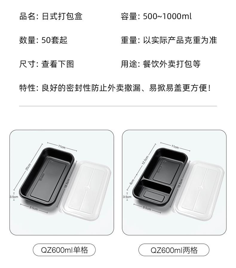 • 600ml 검정색 단일 사각형 상자 50 세트✦✦