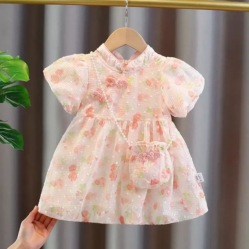 [여자 새 중국] 여자 새 중국 청삼 원피스 여름 아기 공주 치마 중국 스타일