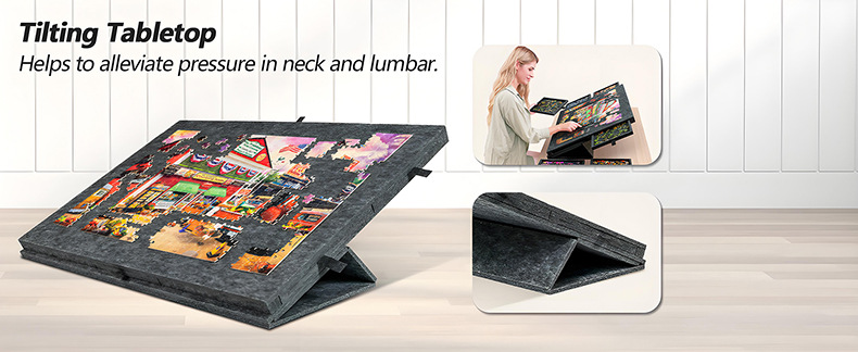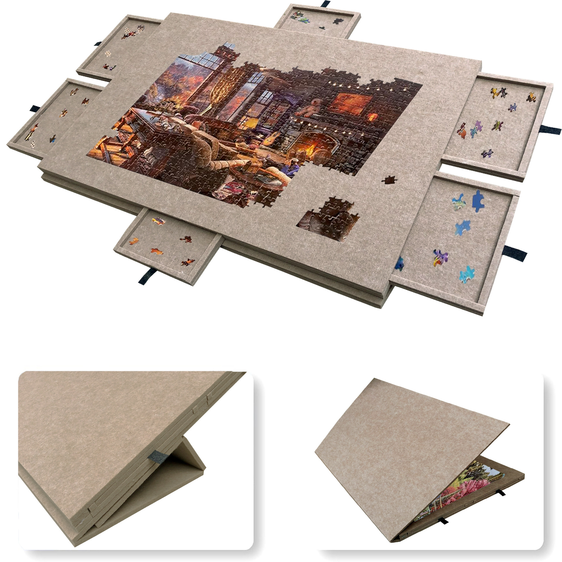 브래킷 뚜껑이 있는 접이식 크로스보더 퍼즐 테이블 보드 6 서랍 휴대용 어린이 입체 퍼즐 매트 분류 펠트스토어 가기