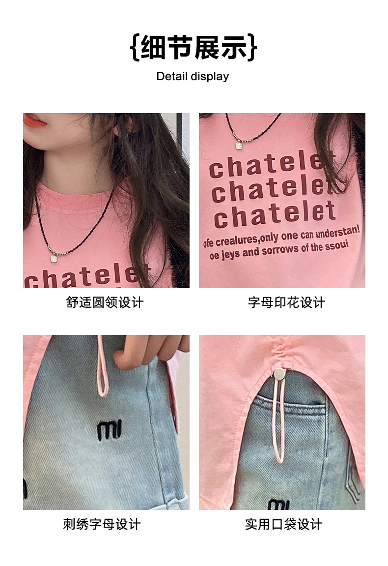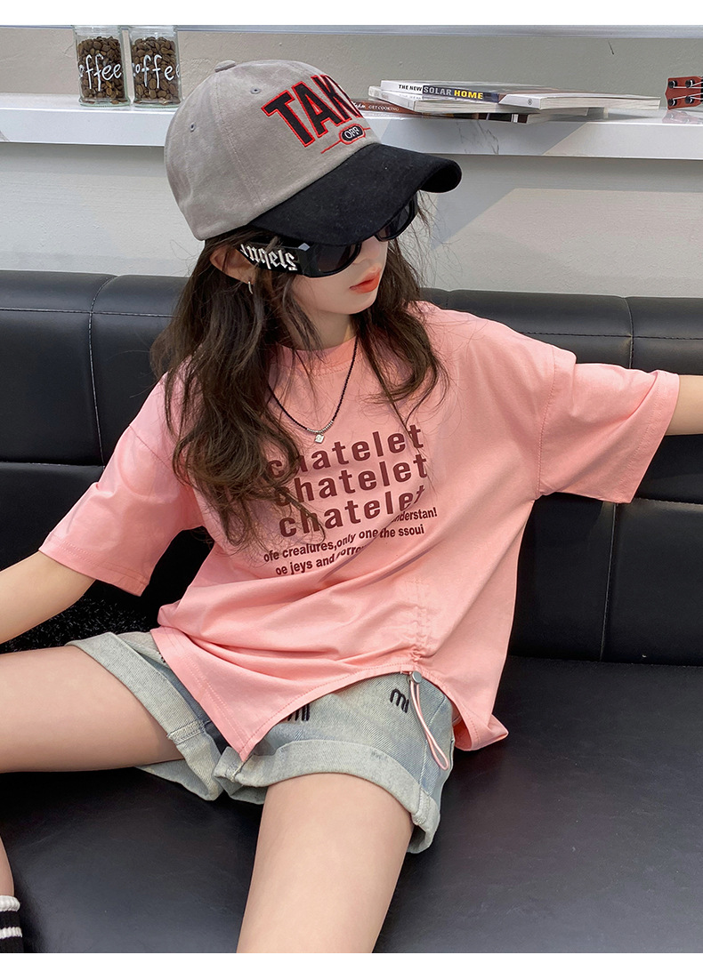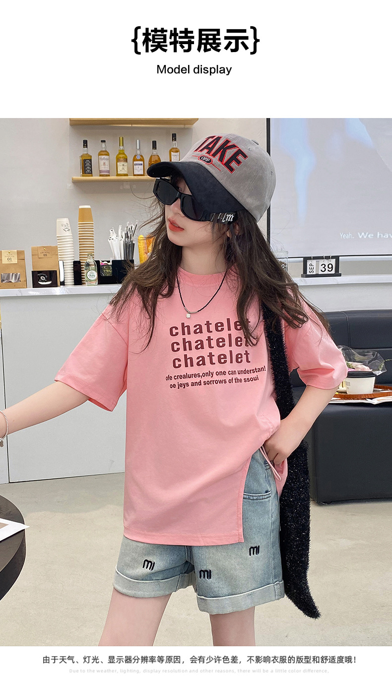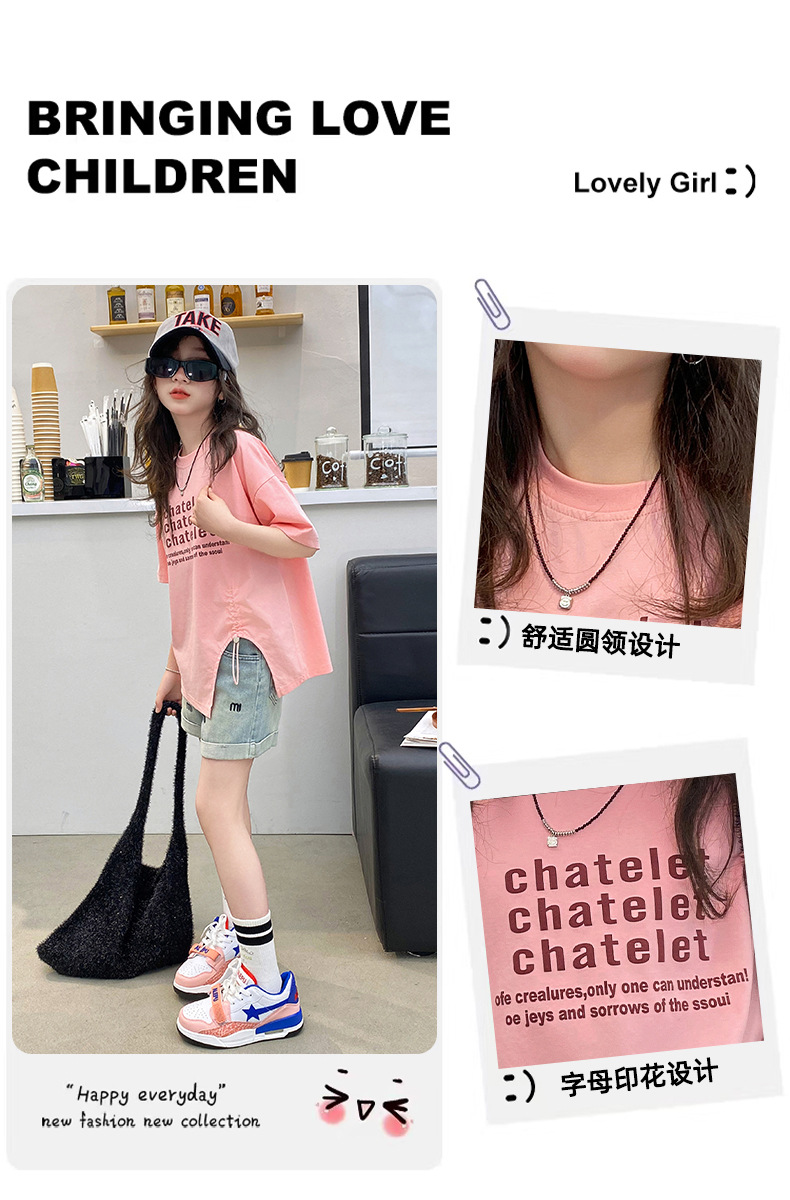 오렌지 타이거 걸스 여름 반팔 티셔츠 세트 2025 신소녀 여름 데님 반바지 어린이 유행스토어 가기