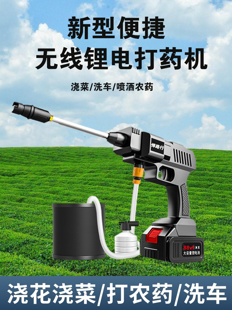 새로운 전기 분무기 농업 무선 리튬 배터리 살포 기계 고압 소독 급수 충전 차 세척수 총스토어 가기