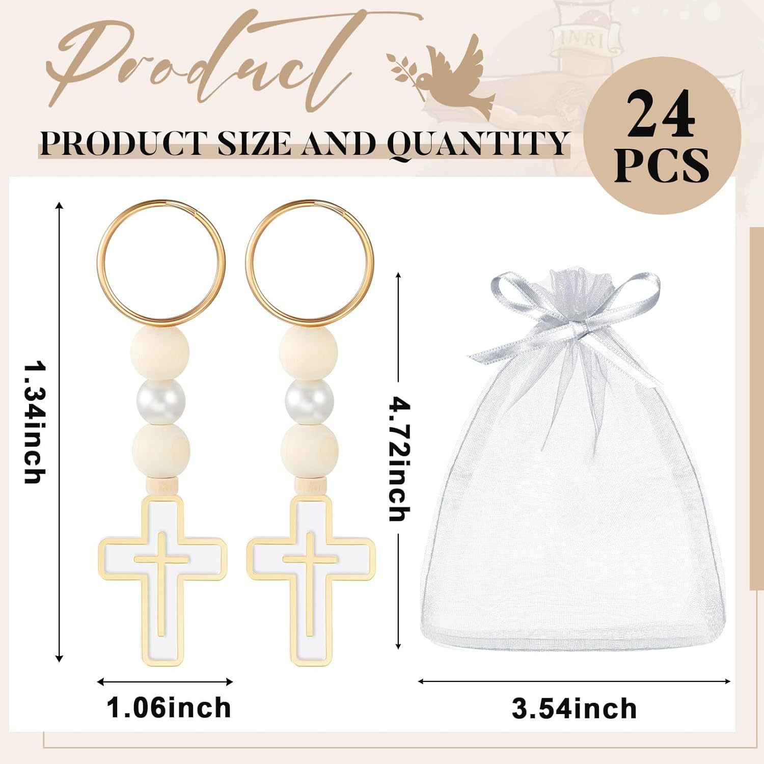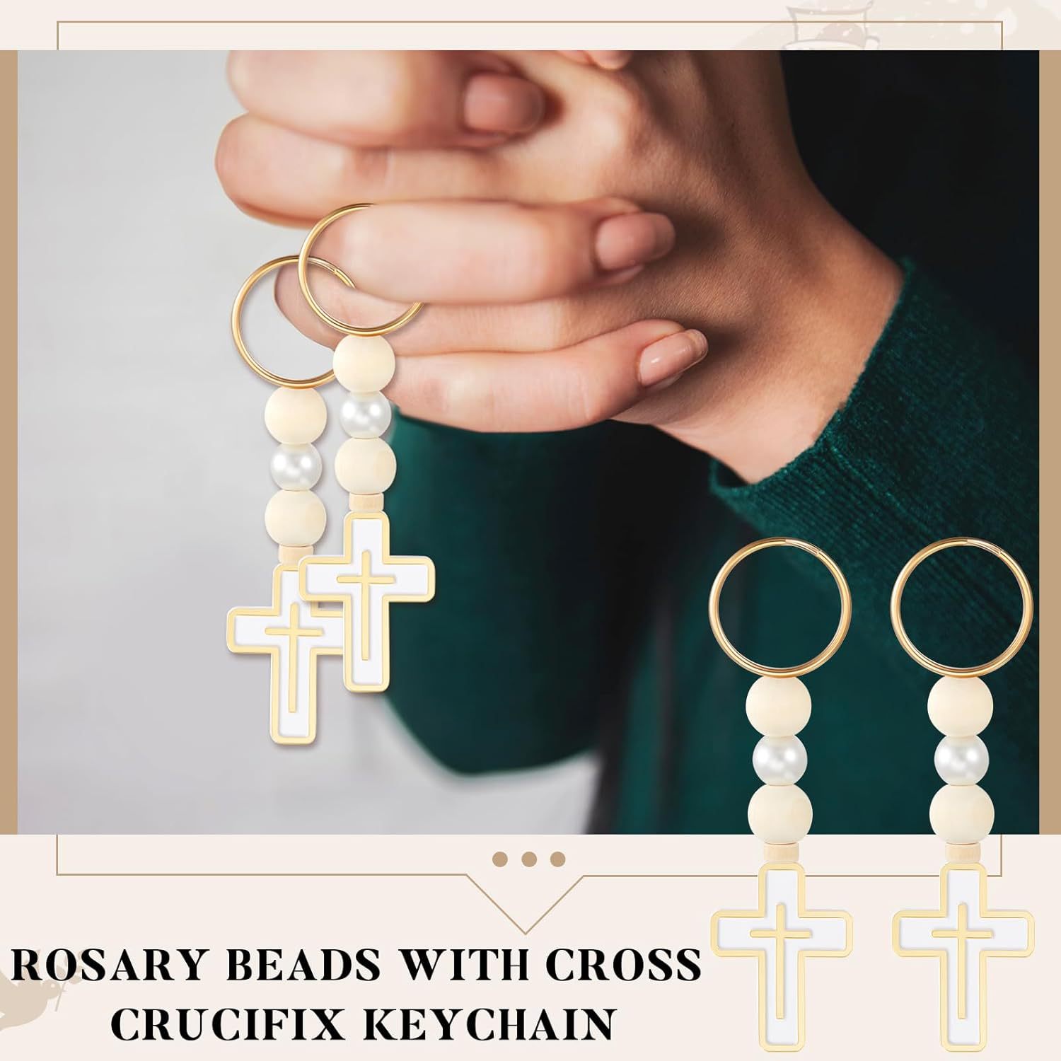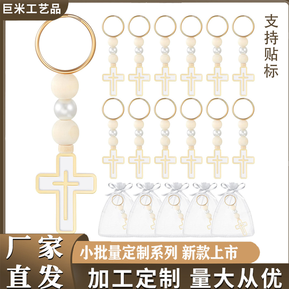 크로스 키 체인 세례 소품 첫 영성체 선물을 가진 묵주