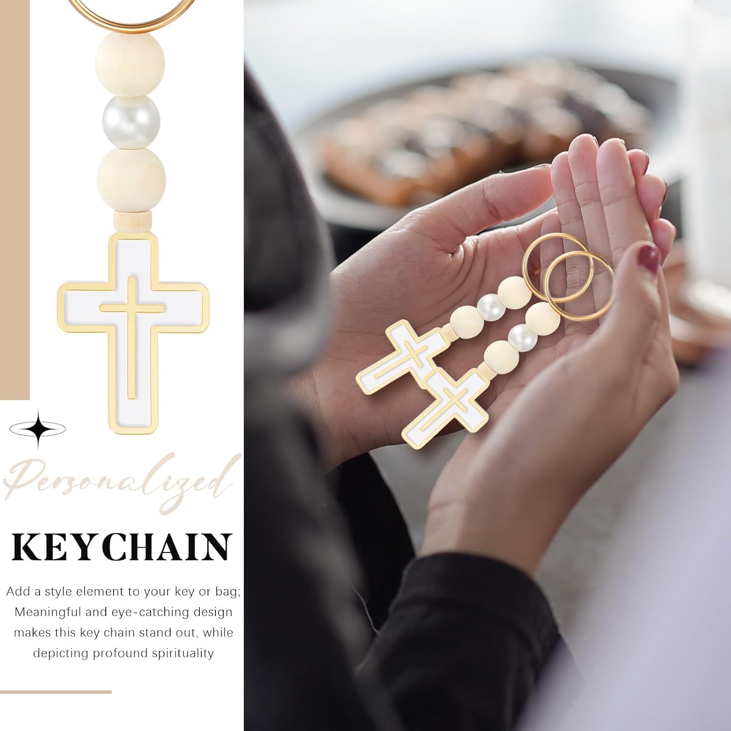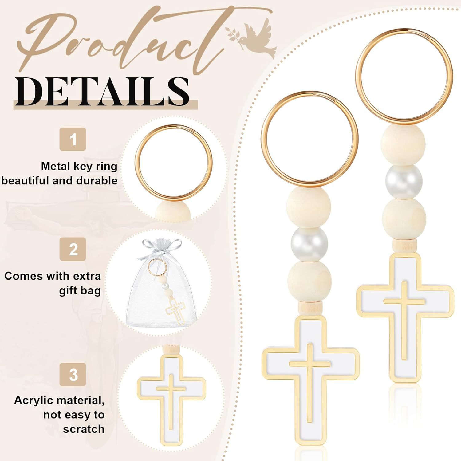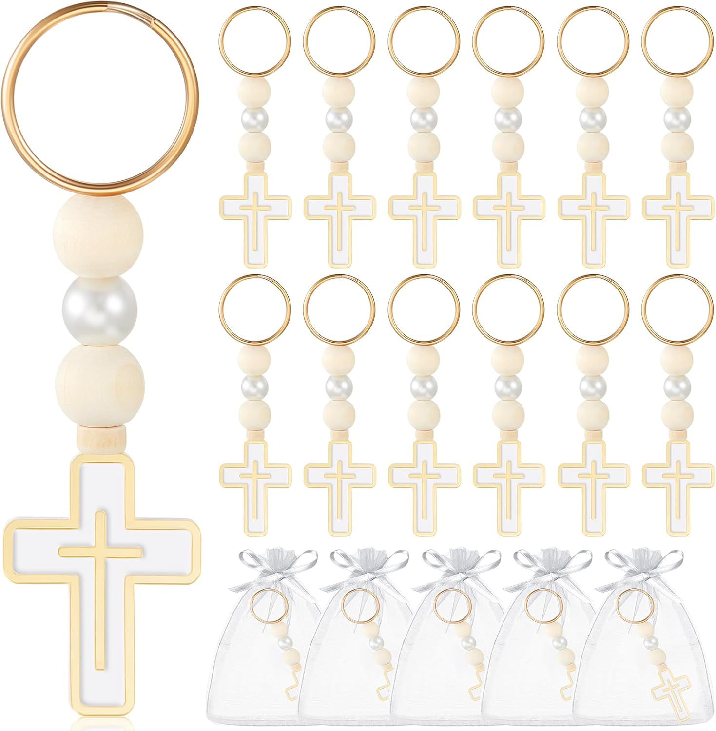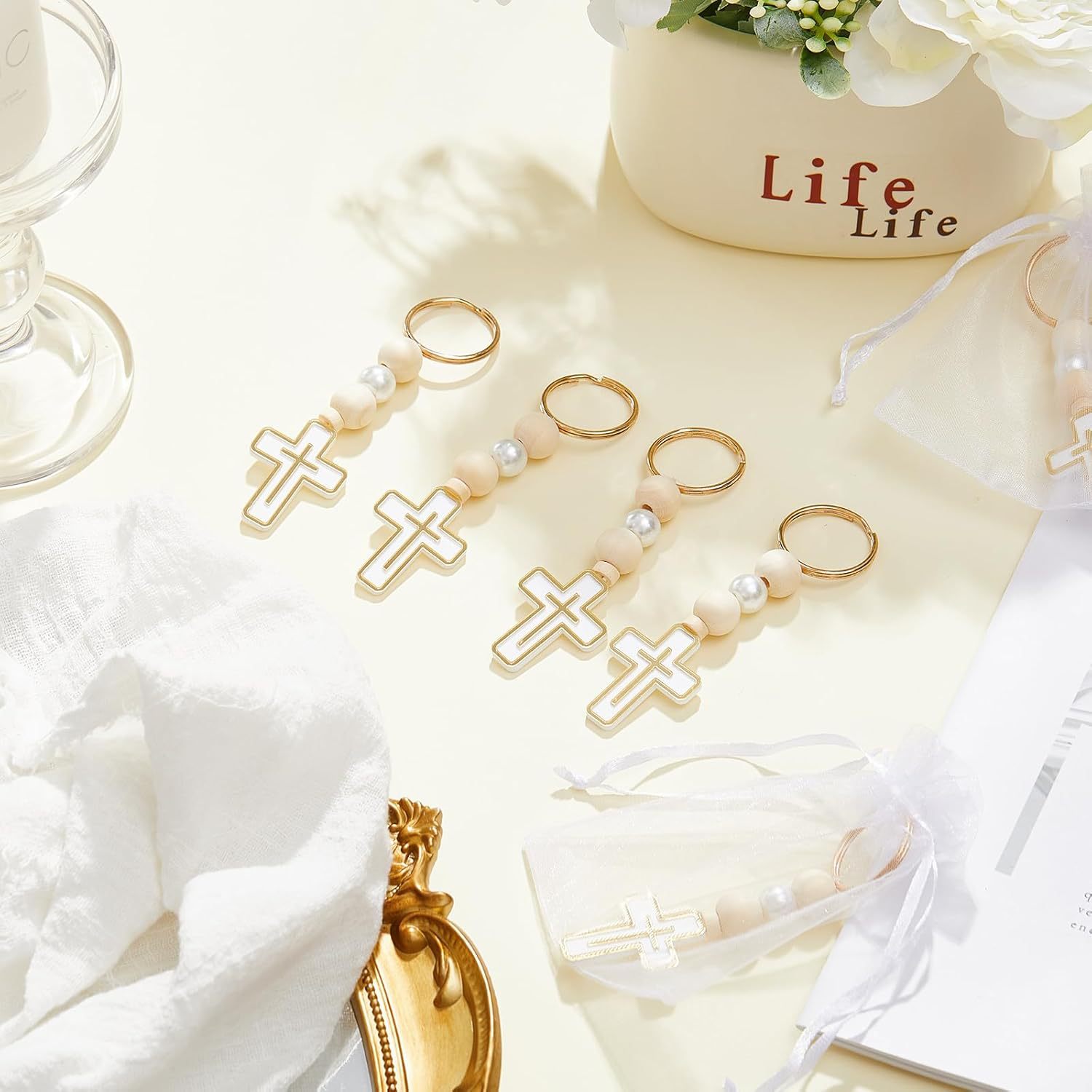크로스 키 체인 세례 소품 첫 영성체 선물을 가진 묵주