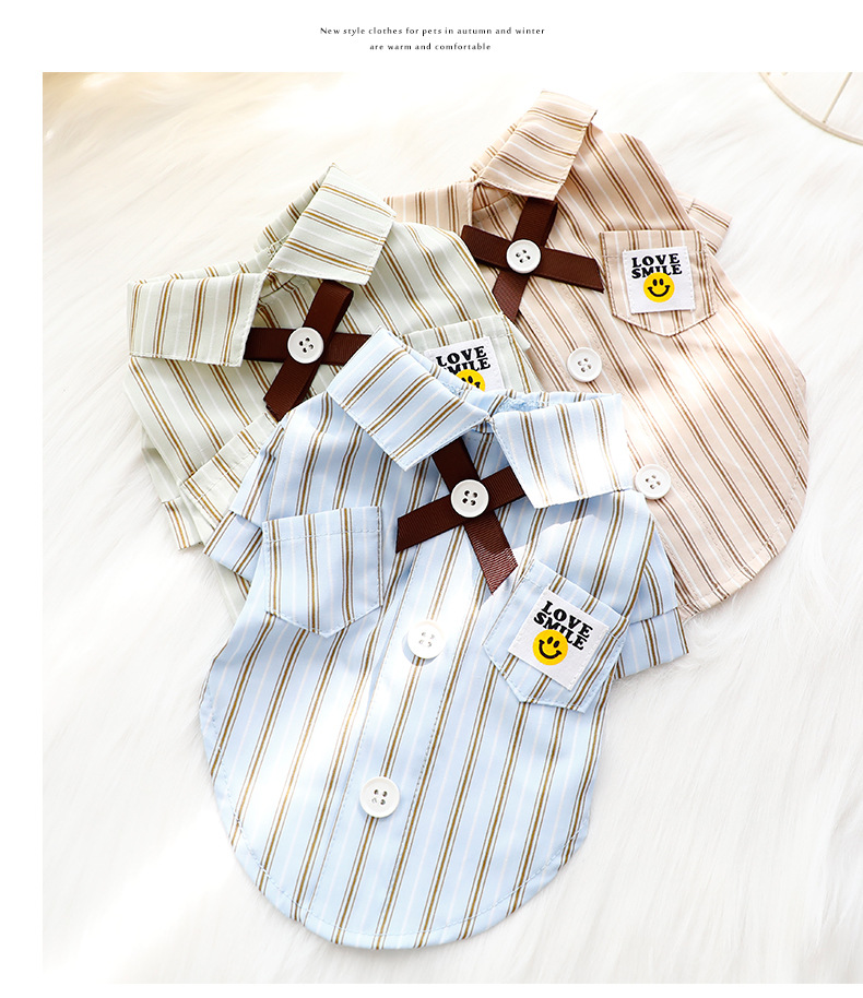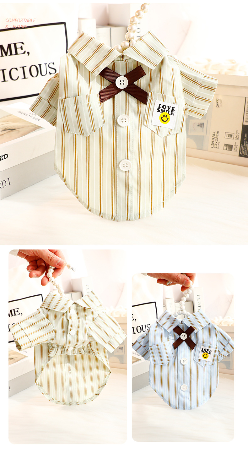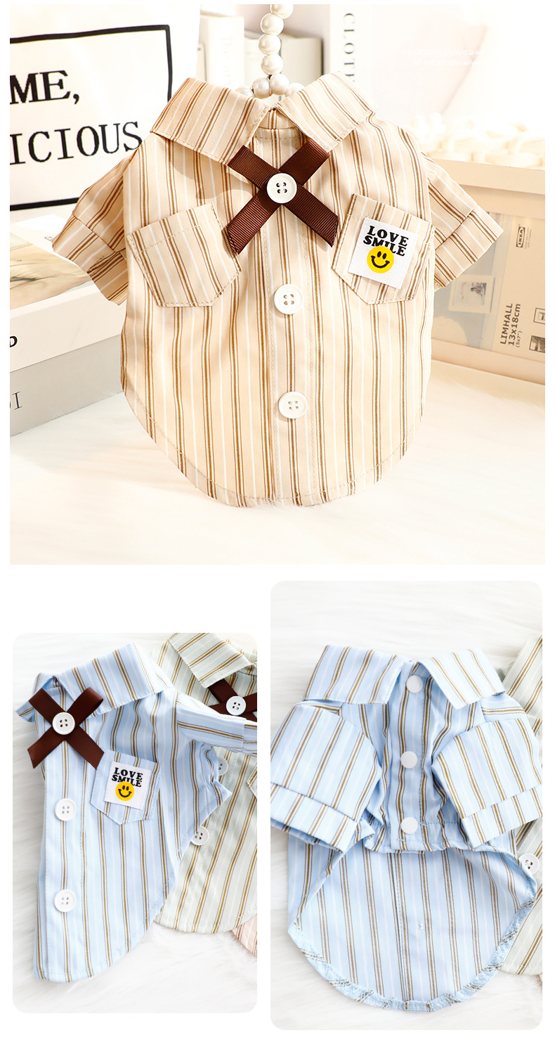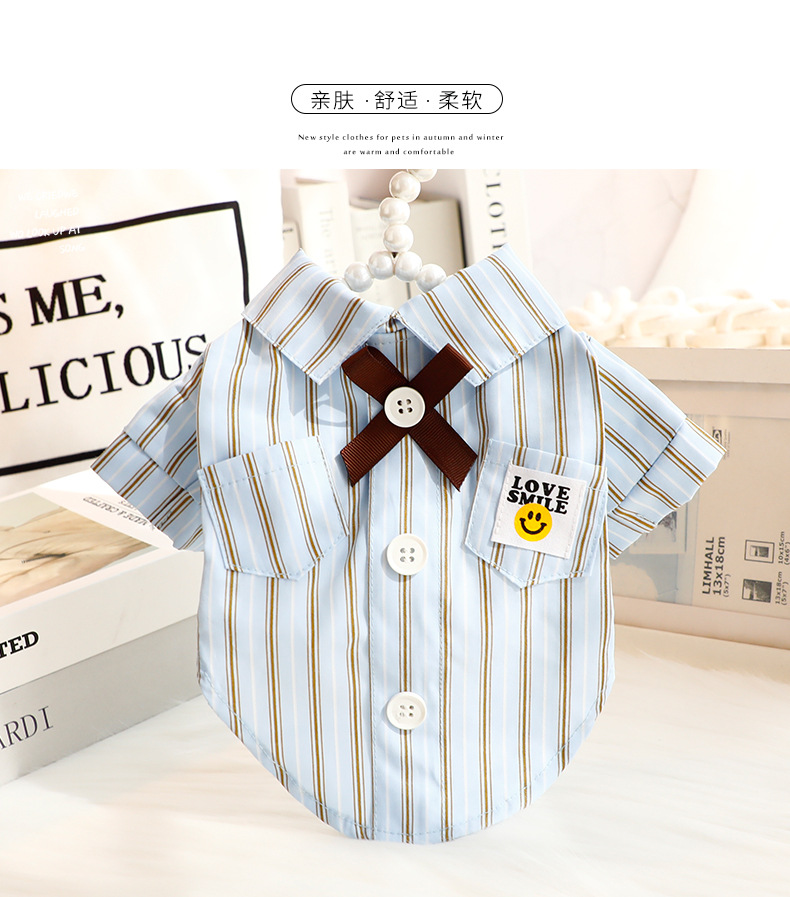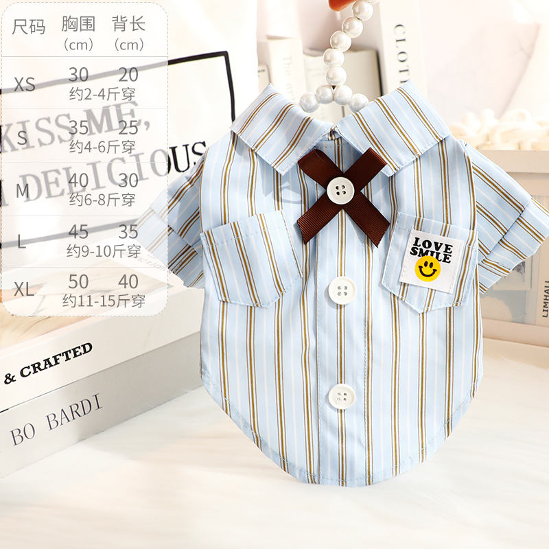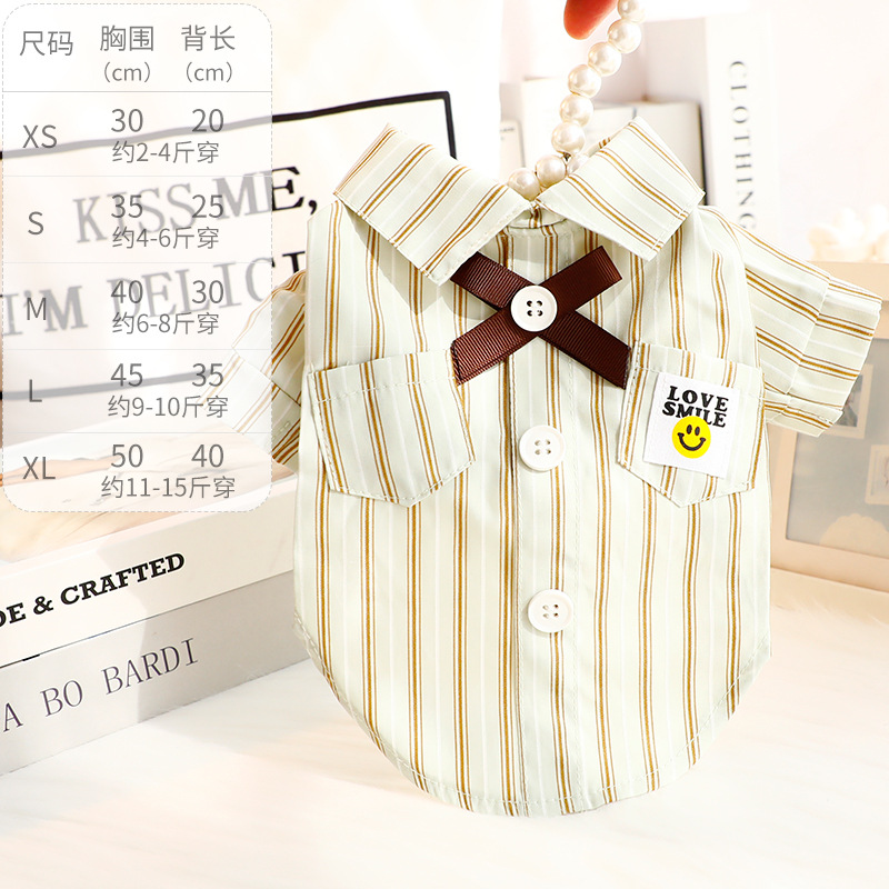 개 옷 봄과 여름 옷 얇은 고양이 잘 생긴 상쾌한 줄무늬 나비 넥타이 셔츠 작은 개 테디 애완 동물 6734