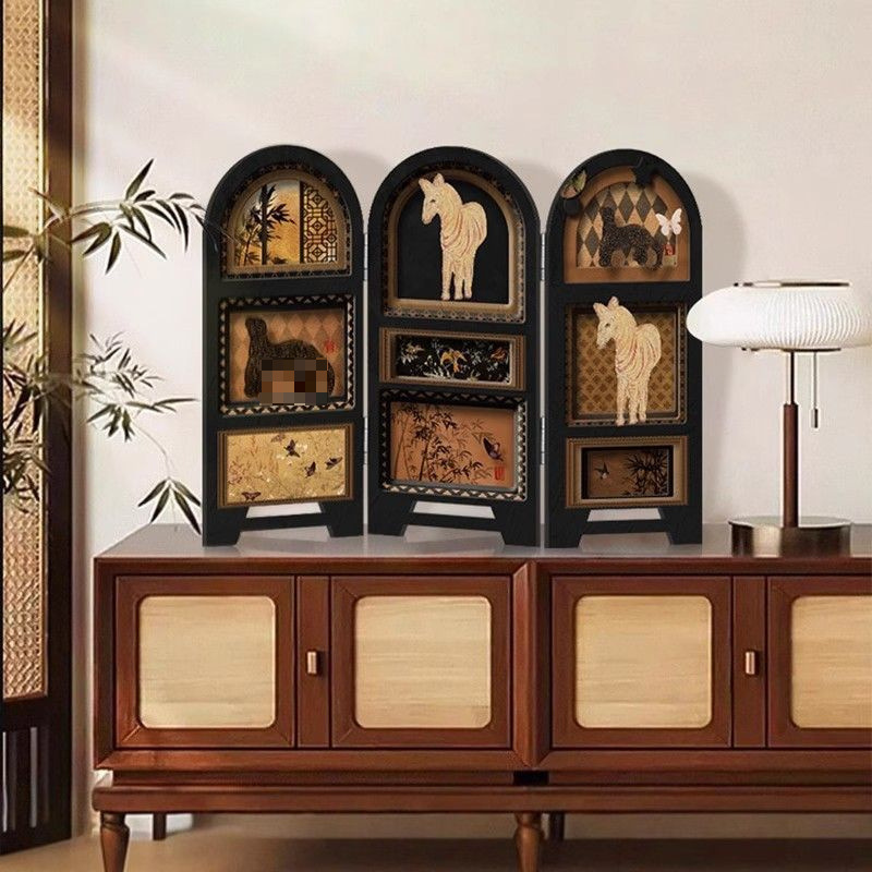 새로운 중국 스타일의 데스크탑 스크린 테이블 진자 그림 장식 골동품 장식 진자 그림 창조적 인 틈새 접이식 나무
