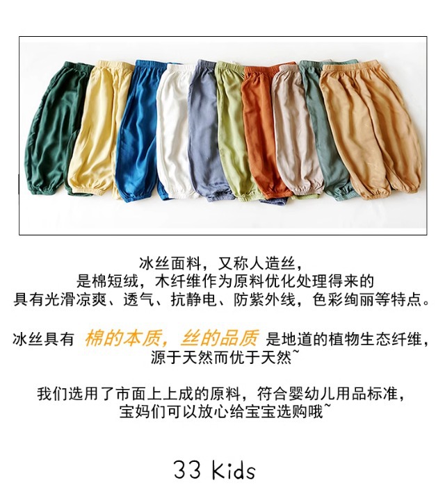 아기의 모기 방지 바지 여름 얇은 어린이 얼음 실크 바지 소년 여름 블루머스 여성의 아기 느슨한 큰 PP 바지스토어 가기