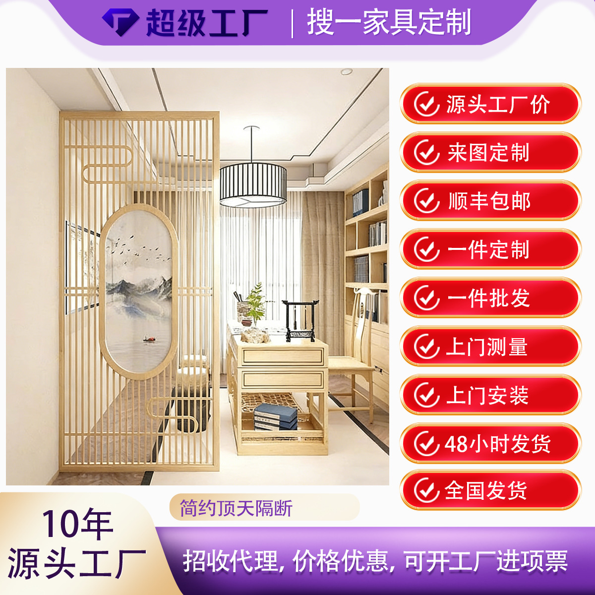 와우! 새로운 중국식 스크린 파티션, 거실 입구를 가리고 현관을 장식하는 원목 심플 모던 격자형 디자인.스토어 가기