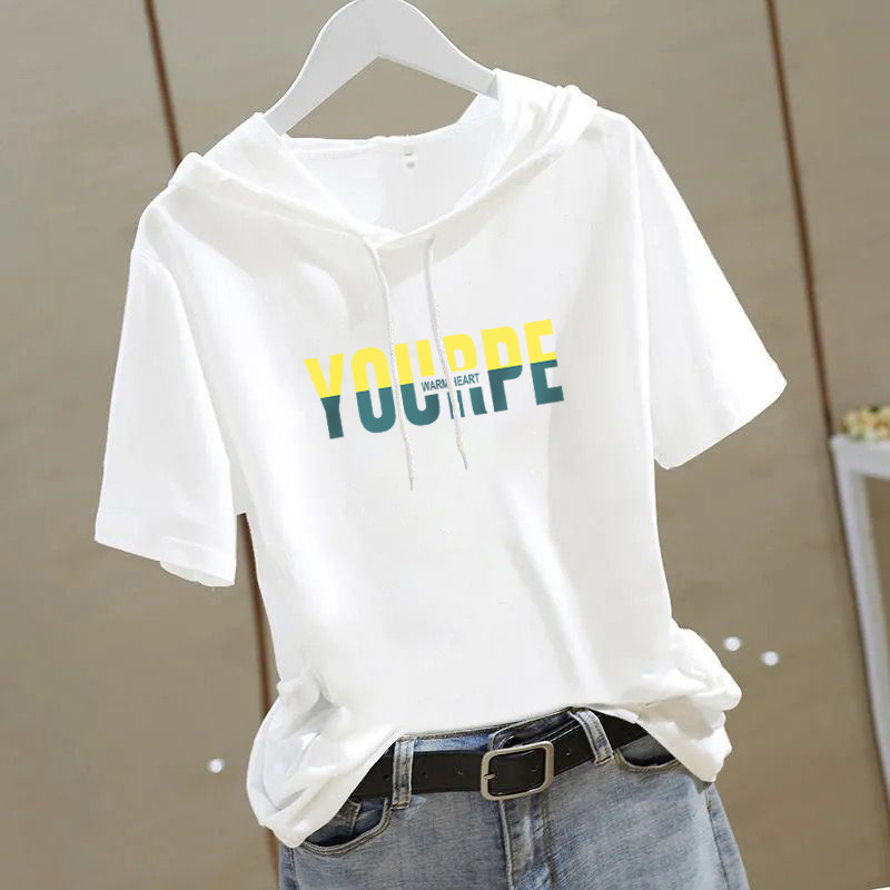 100 면 후드 티셔츠 여성 반소매 2025 여름 뉴 에이지 감소 슬리밍 반소매 느슨한 한국 스타일 여성용 땀스토어 가기