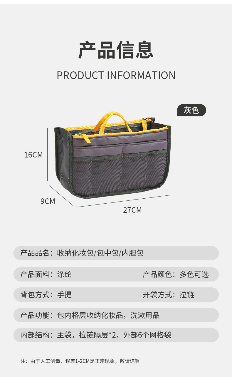 한국식 다기능 이너 백 더블 레이어 지퍼 백 여행 편리한 대용량 별도의 저장 가방