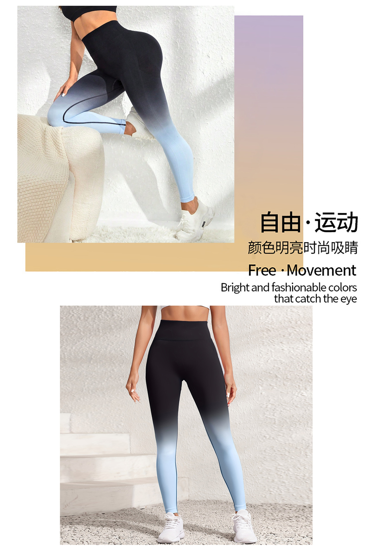 아마존 핫 새로운 유럽과 미국의 원활한 그라디언트 교수형 염료 요가 세트 여성용 빠른 건조 플라스틱 힙합 스포츠 요가