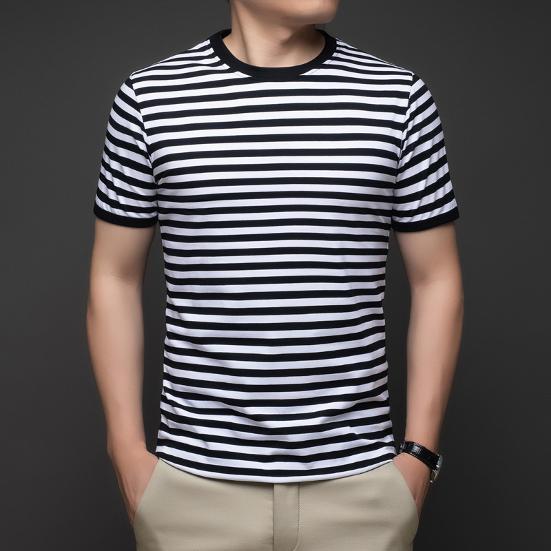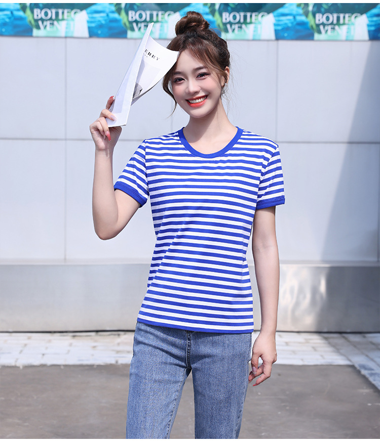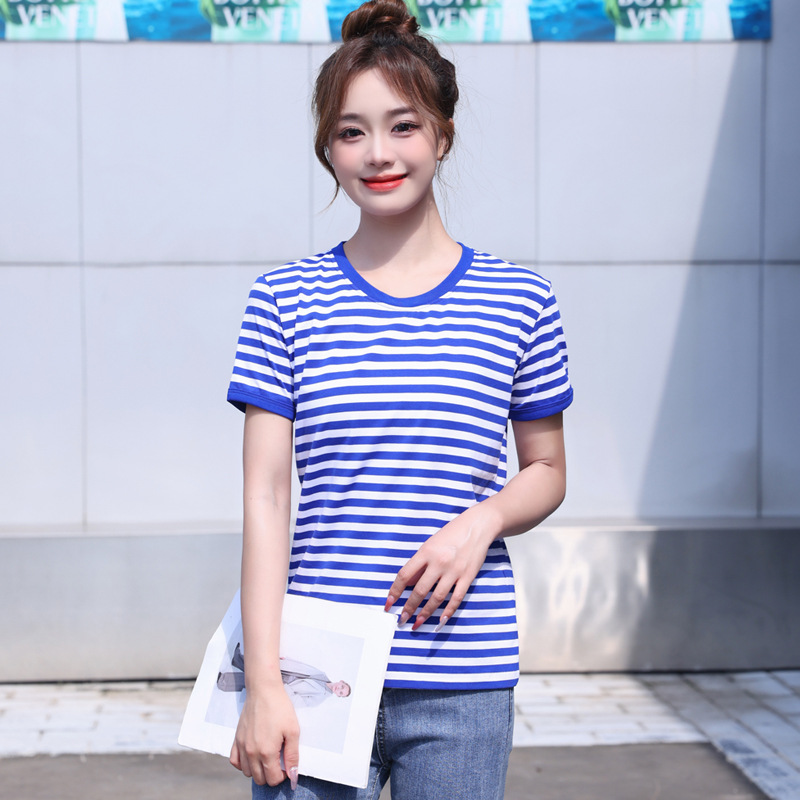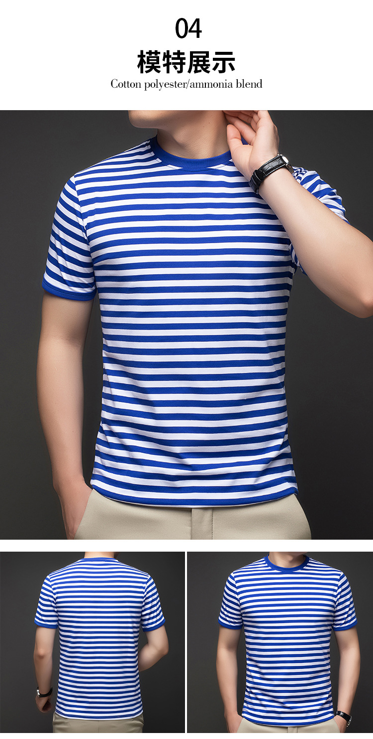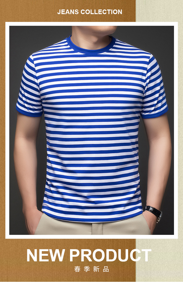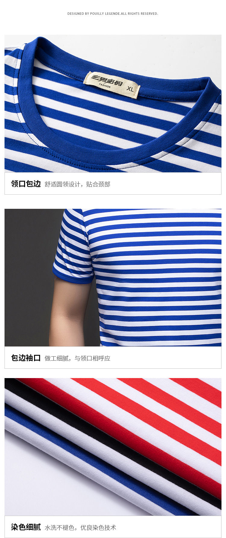 여름 바다 소울 셔츠 남자 반팔 티셔츠 코튼 블루와 화이트 스트라이프 퍼포먼스 세트 반소매 커플의 크루 넥 선원 세트
