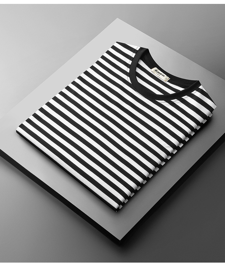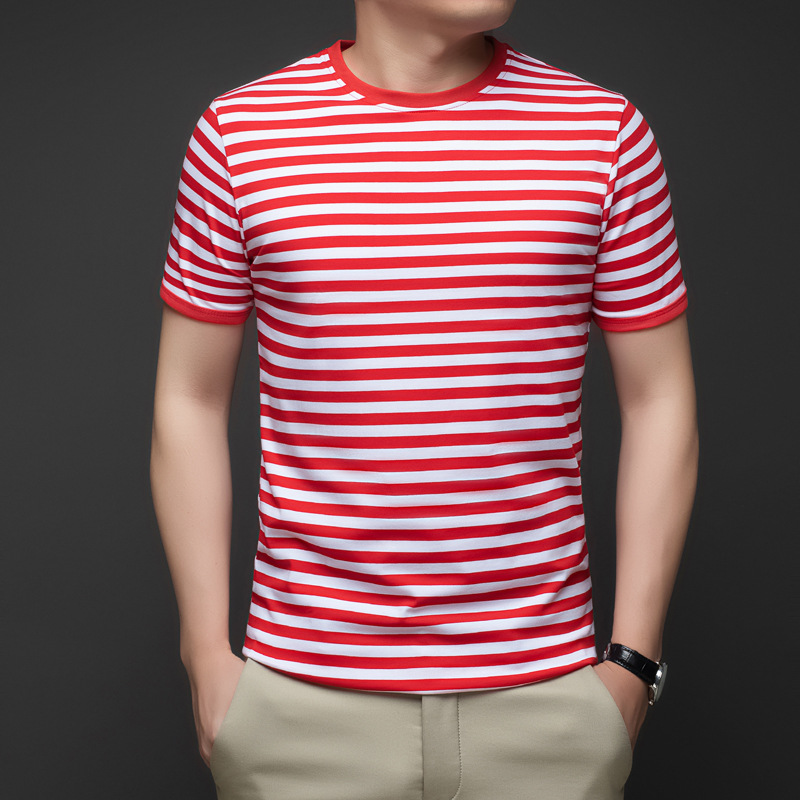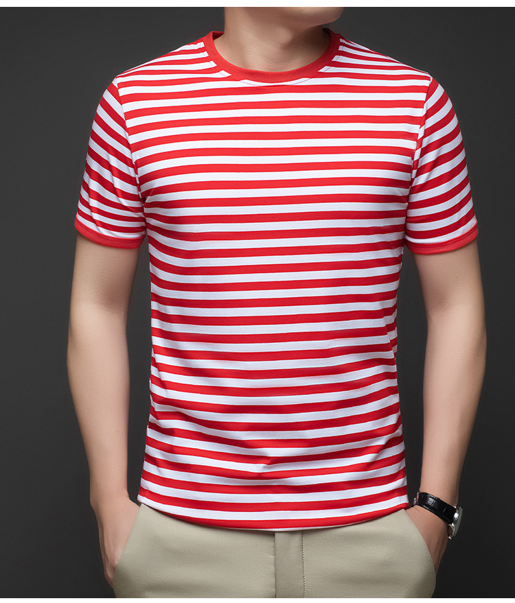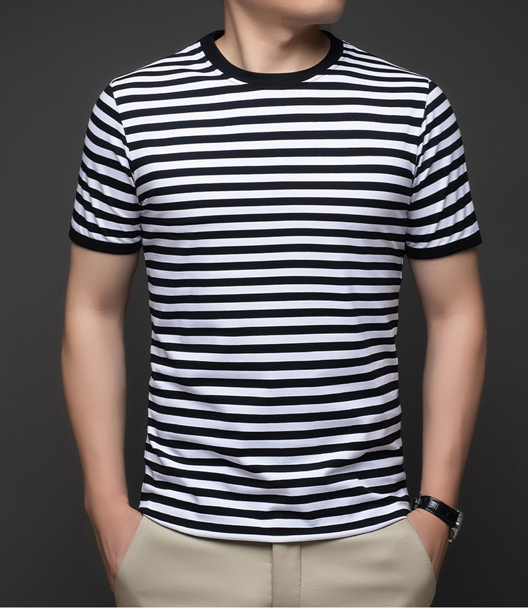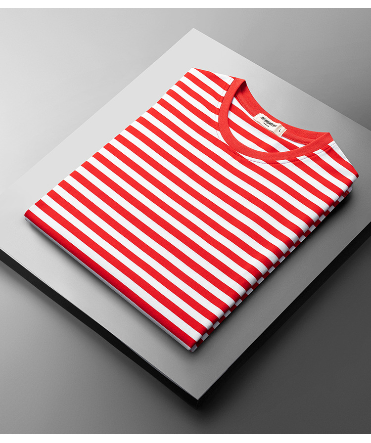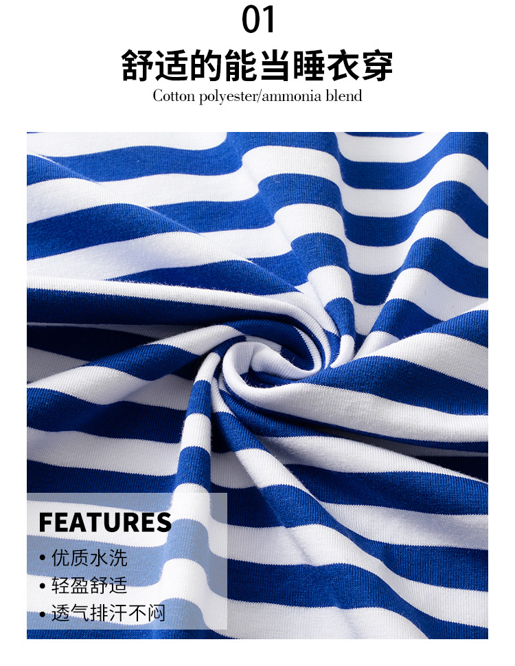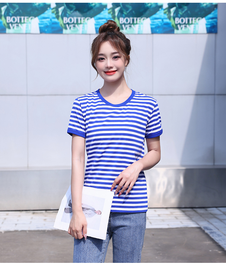 여름 바다 소울 셔츠 남자 반팔 티셔츠 코튼 블루와 화이트 스트라이프 퍼포먼스 세트 반소매 커플의 크루 넥 선원 세트
