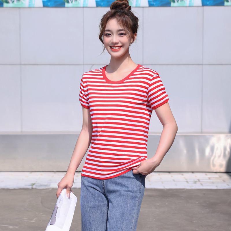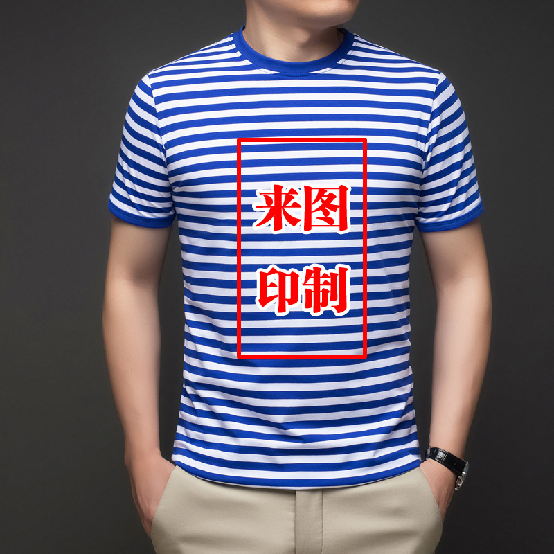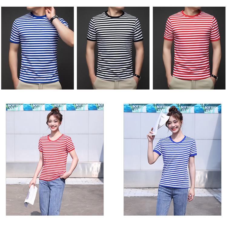 여름 바다 소울 셔츠 남자 반팔 티셔츠 코튼 블루와 화이트 스트라이프 퍼포먼스 세트 반소매 커플의 크루 넥 선원 세트스토어 가기