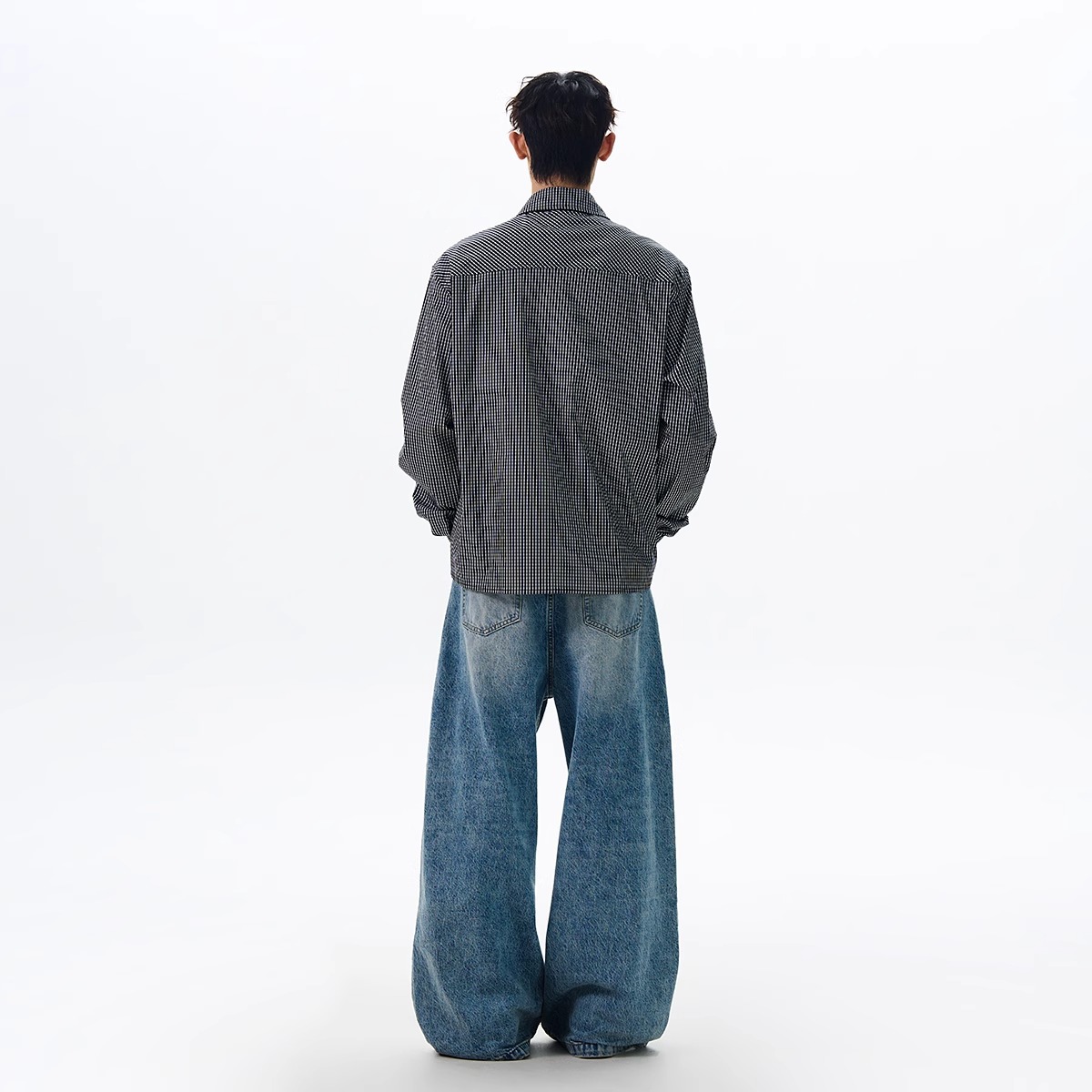 라이트 블루 격자 무늬 셔츠 남자 일본식 레트로 세트 내부 긴 소매 셔츠 하이 엔드 스프링 웨어 재킷스토어 가기