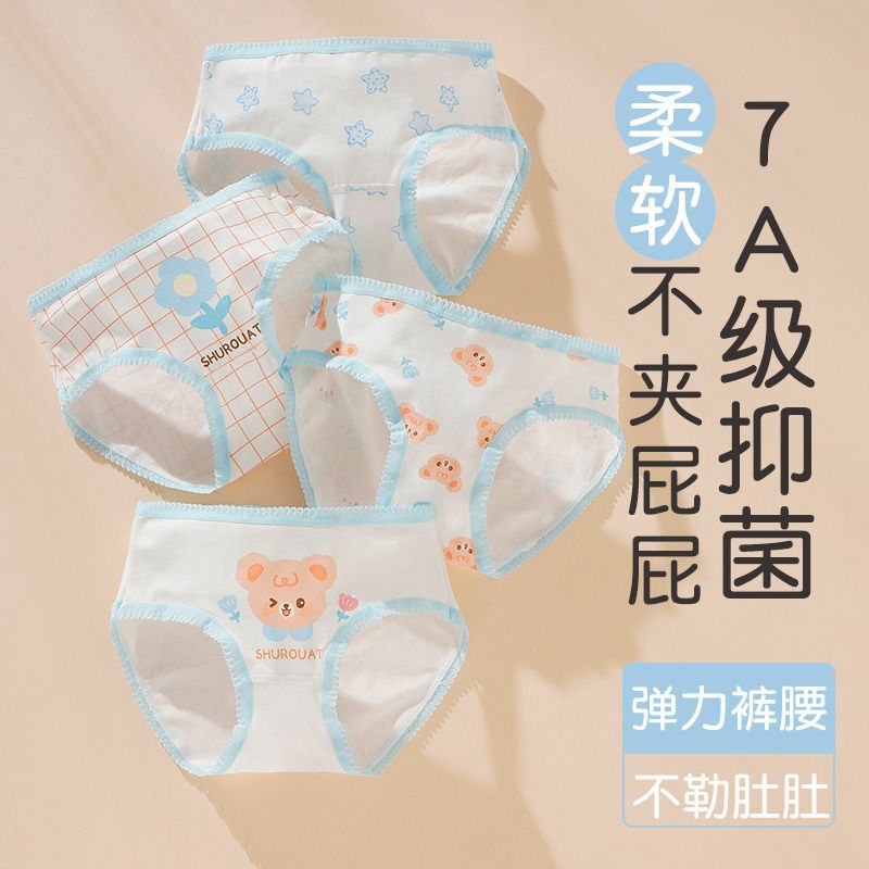 새로운 아기 항균 가랑이 클래스 A 순면 삼각형 소녀 속옷 중형 및 대형 어린이 소녀 속옷 도매스토어 가기
