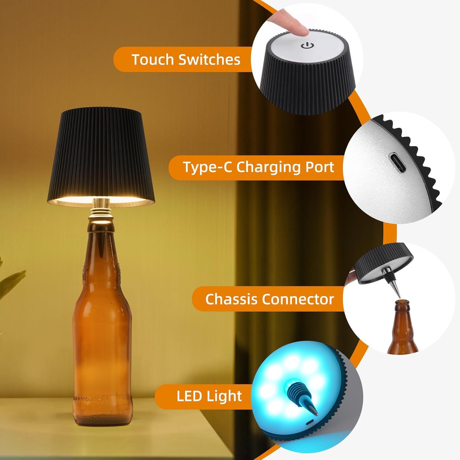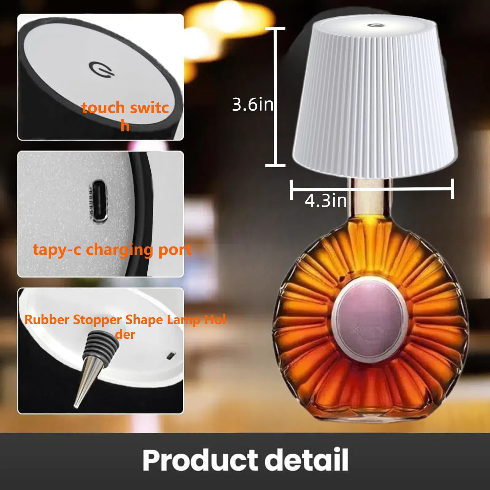 국경 간 폭발 플러그인 와인 병 라이트 와인 헤드 라이트 분위기 라이트 나이트 라이트 충전 테이블 램프 RGB 휴대용 테이블 램프스토어 가기