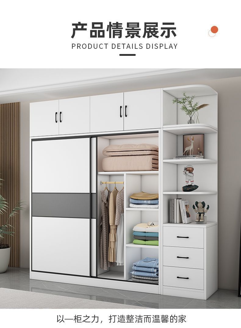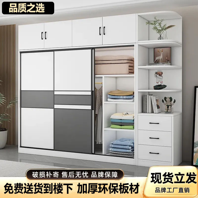 옷장 홈 침실 나무 미닫이 문 큰 옷장 현대 간단한 임대 방 보관 캐비닛 어린이 캐비닛