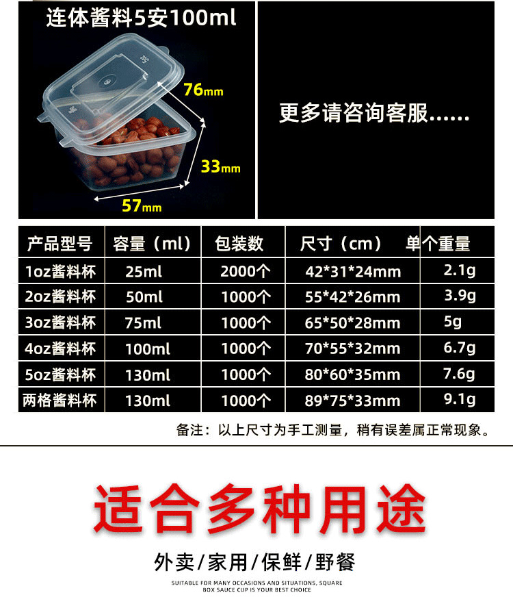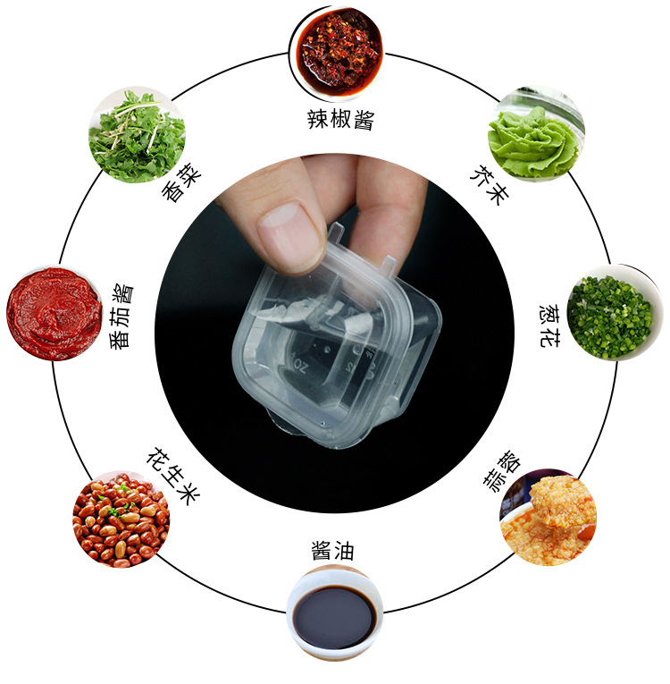2 일회용 소스 박스 테이크 아웃 팩 칠리 오일 50ml 스파이스 컵 피온 프루트에 담근 뚜껑 결합 광장