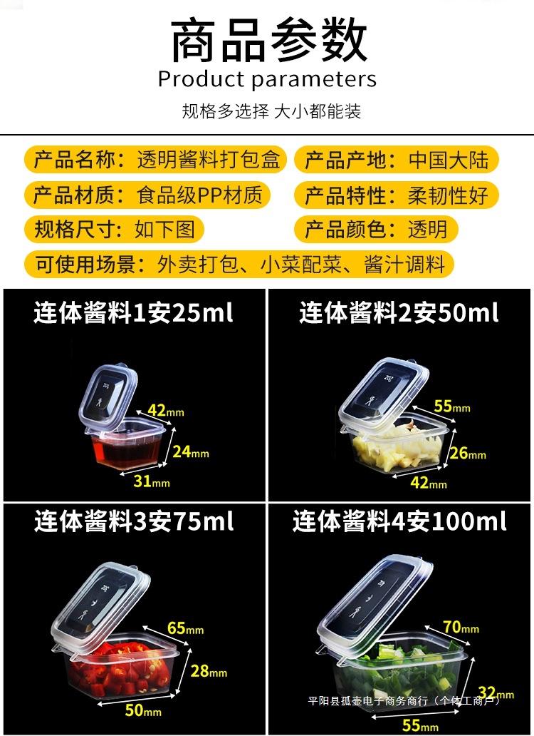 2 일회용 소스 박스 테이크 아웃 팩 칠리 오일 50ml 스파이스 컵 피온 프루트에 담근 뚜껑 결합 광장스토어 가기