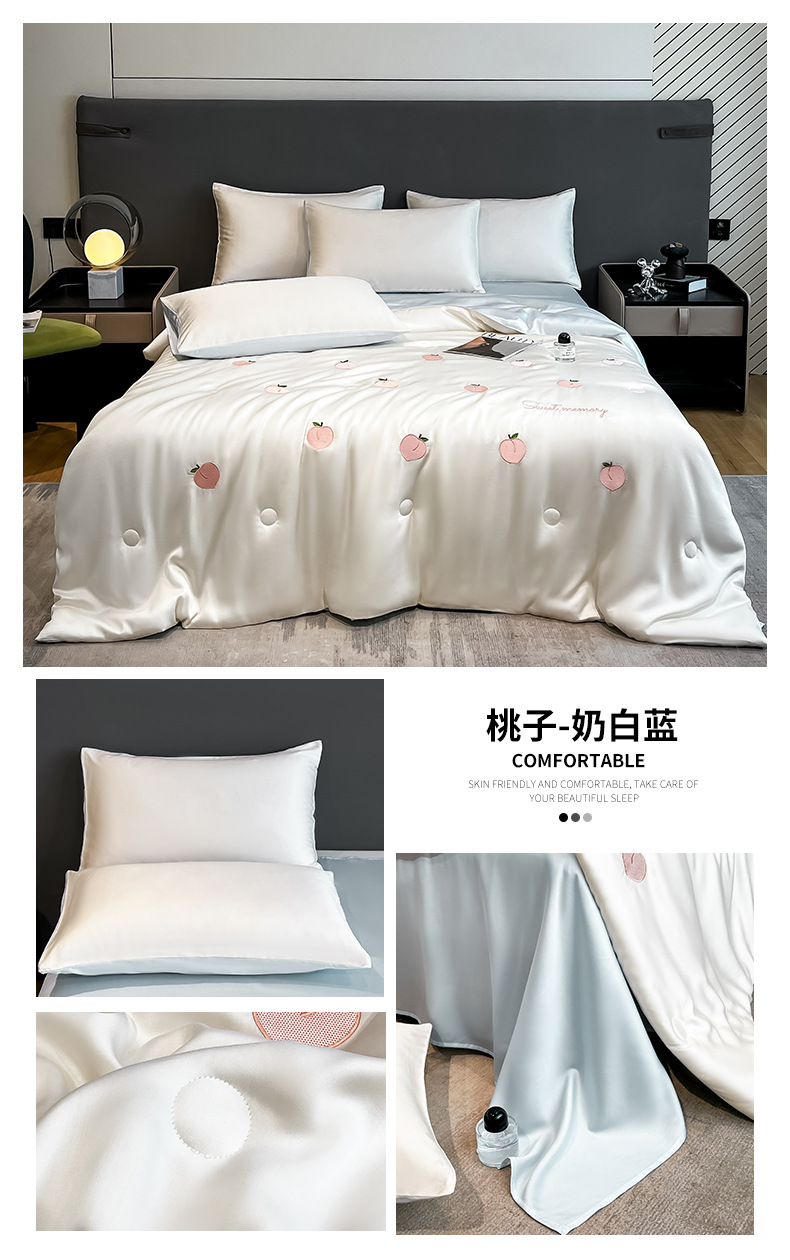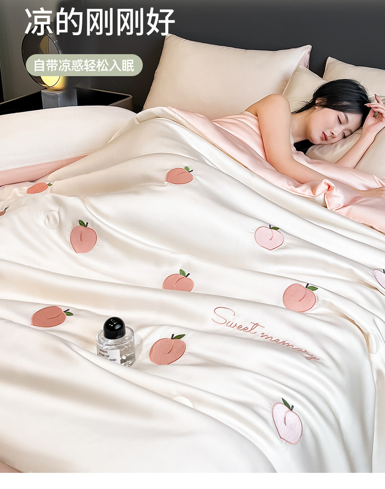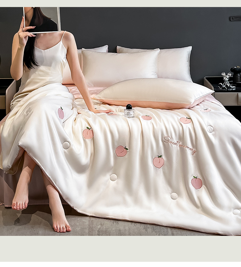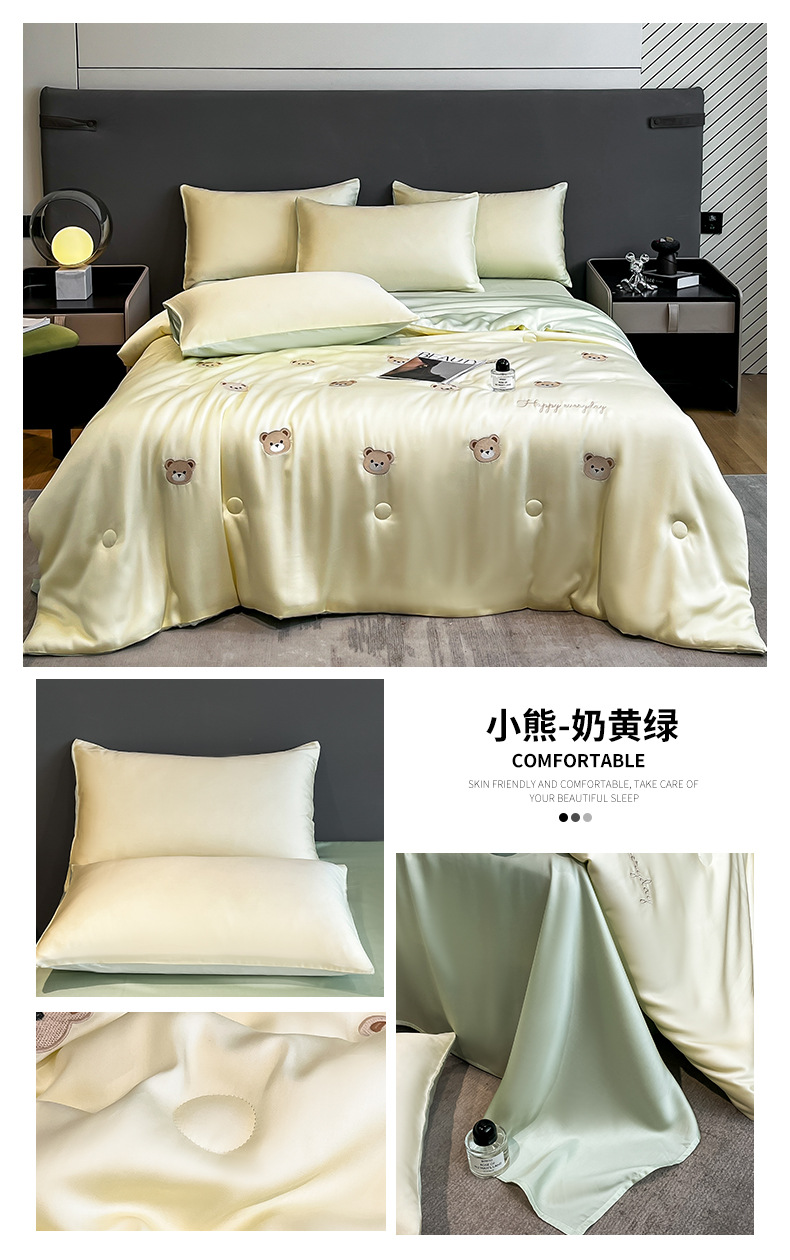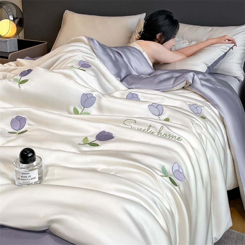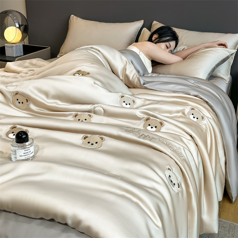 여름 아이스 실크 여름 쿨 퀼트 에어컨 이불 4 조각 기계 세탁용 비 실크 텐셀 싱글 및 더블 얇은 이불스토어 가기