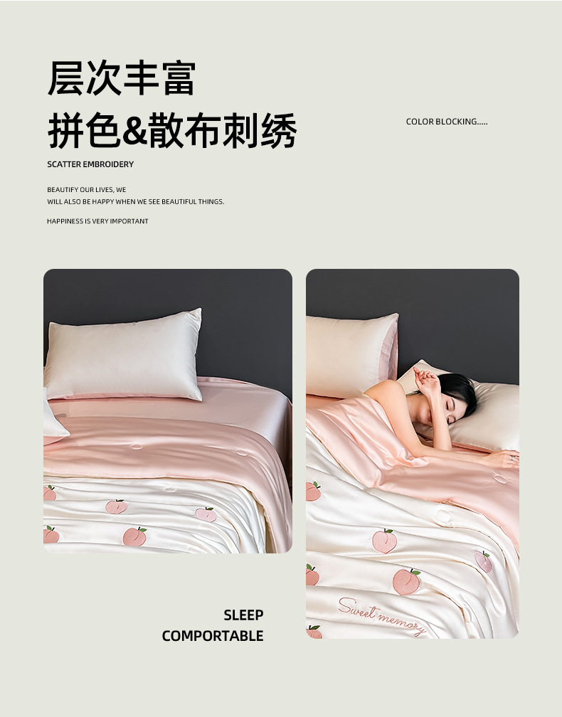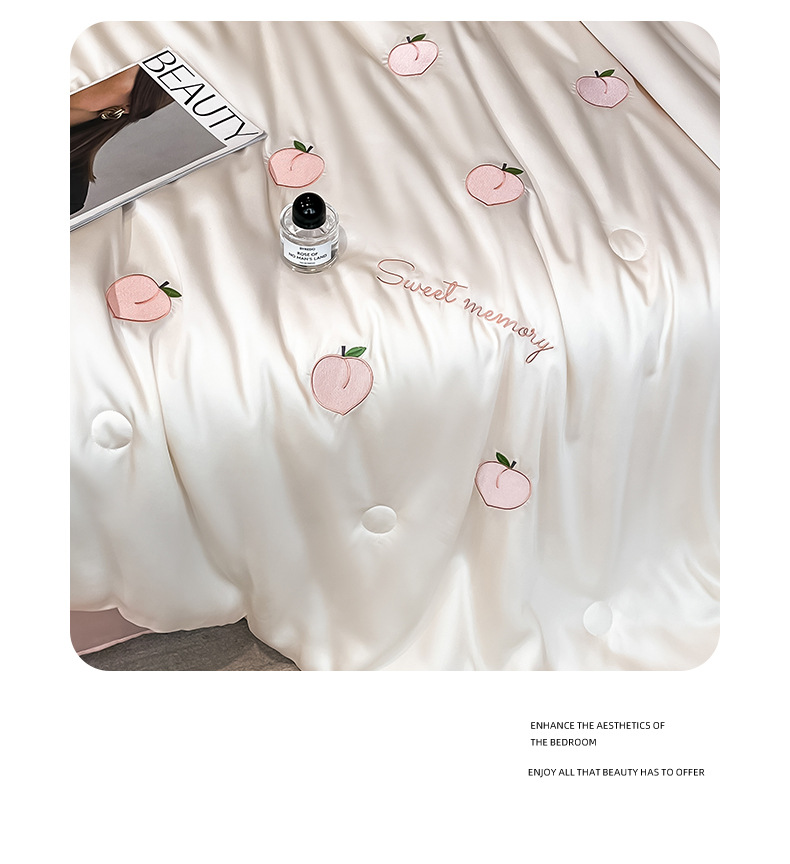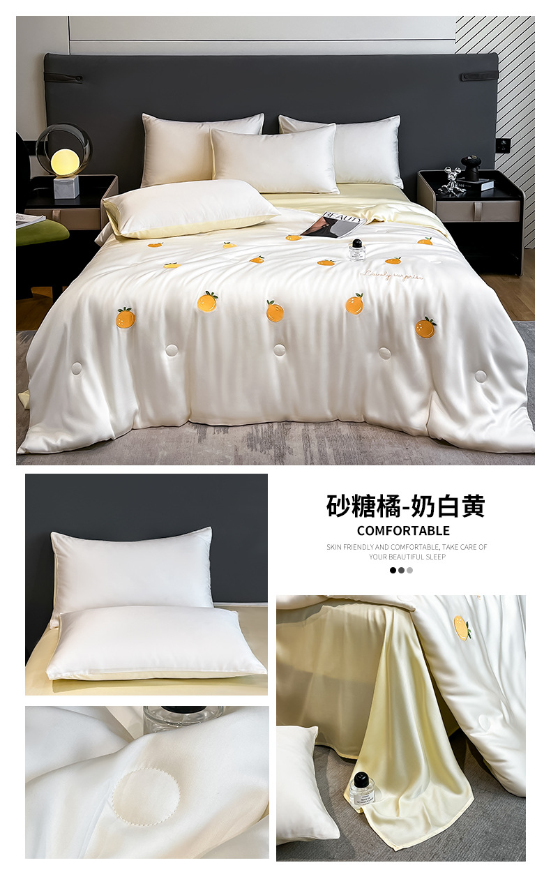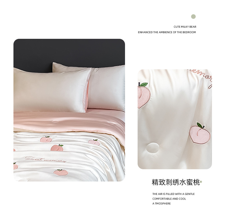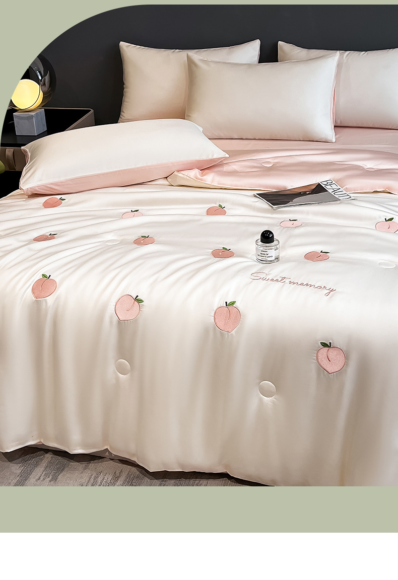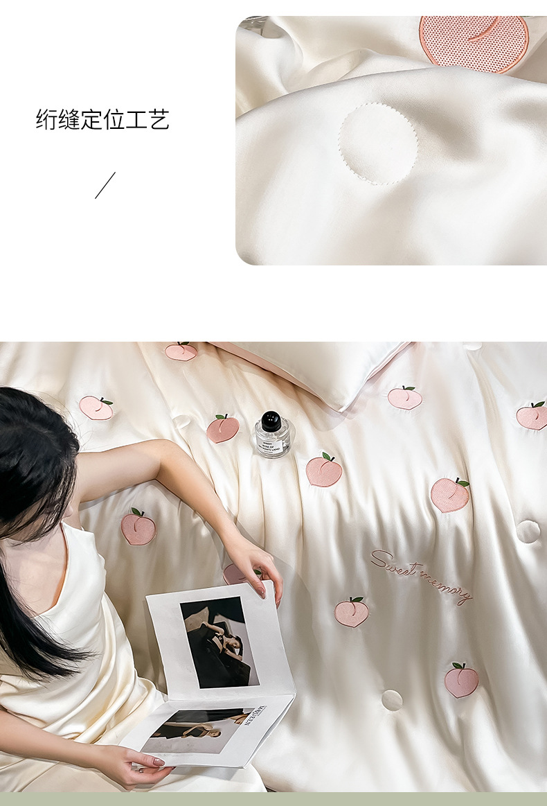 여름 아이스 실크 여름 쿨 퀼트 에어컨 이불 4 조각 기계 세탁용 비 실크 텐셀 싱글 및 더블 얇은 이불스토어 가기