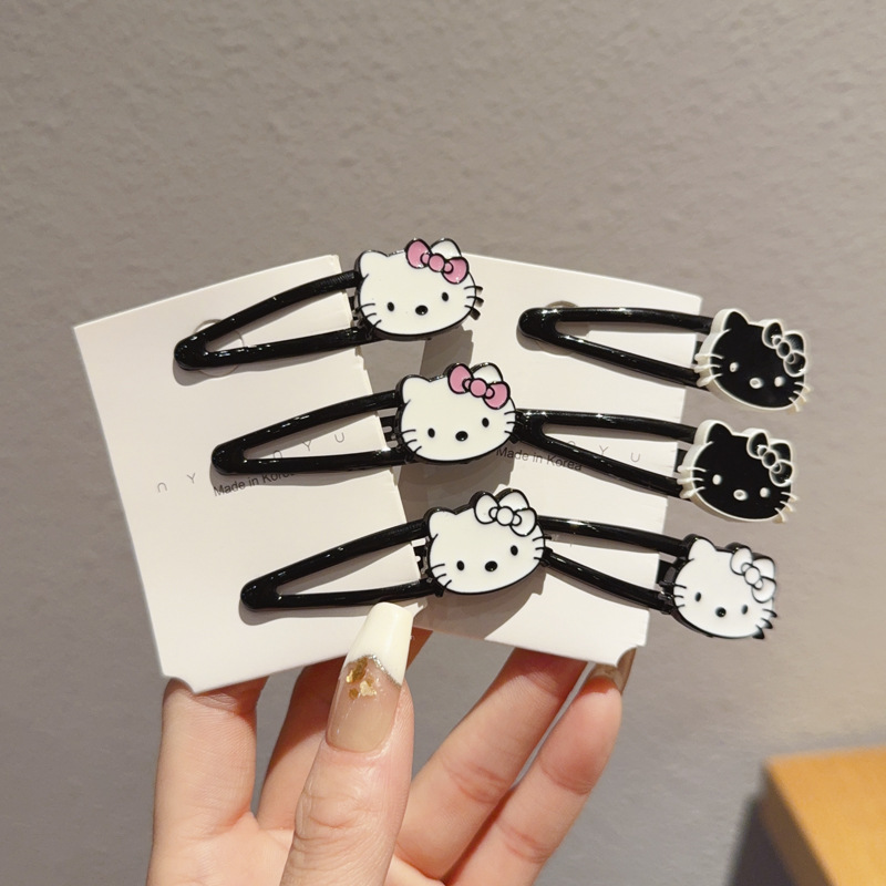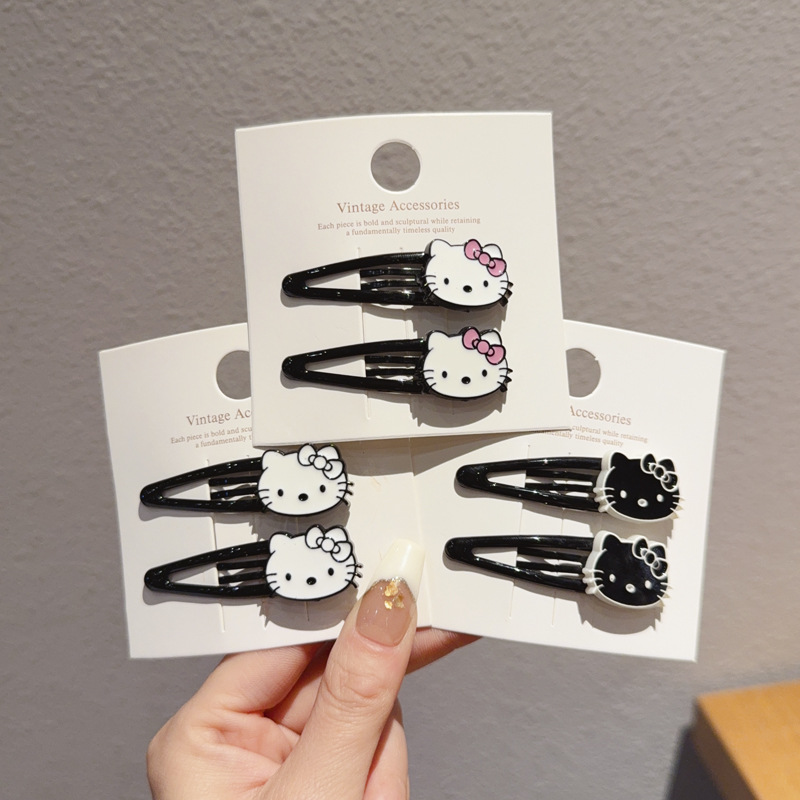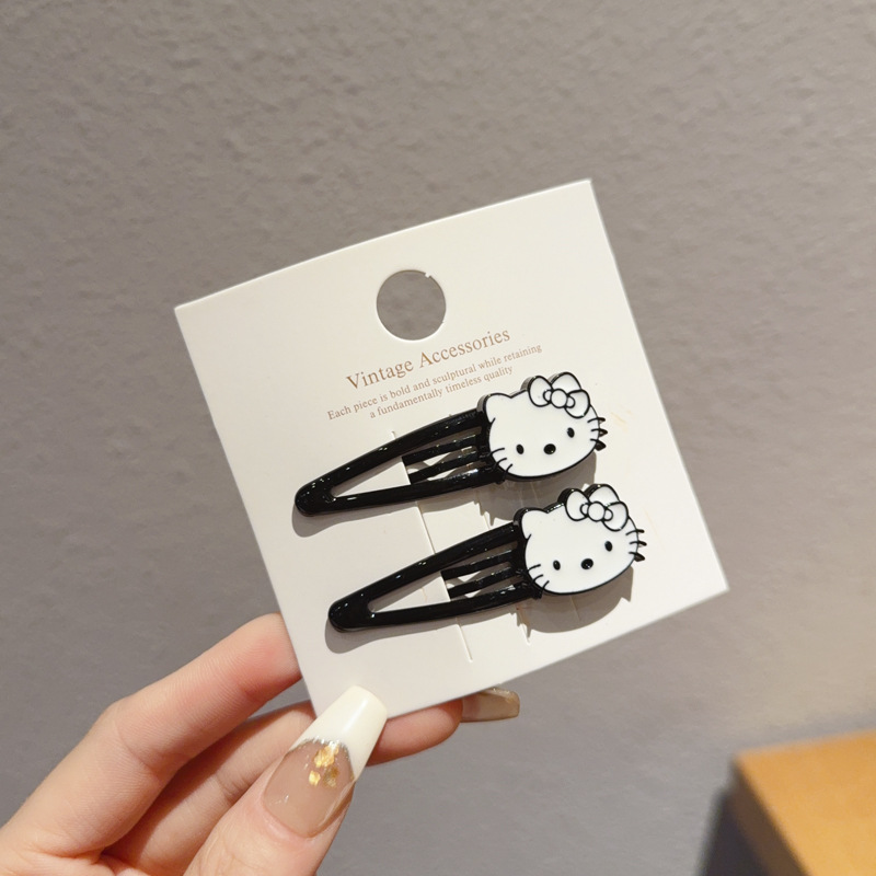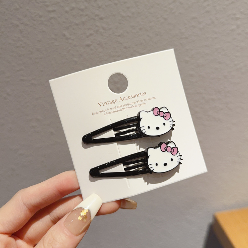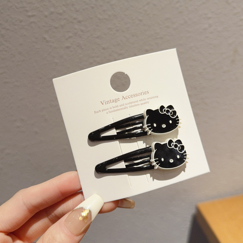 헬로키티 헤어핀 빈티지 블랙 엣지 클립 귀여운 소녀의 하트 뱅이 클립 일본과 한국 스타일 헤어핀 소프트 걸 클립