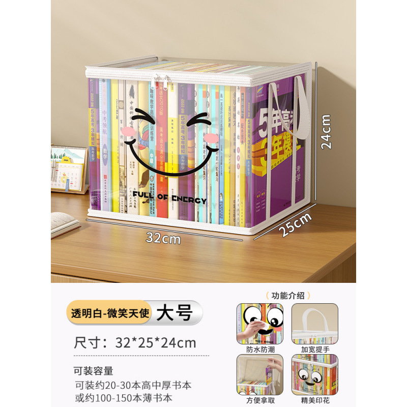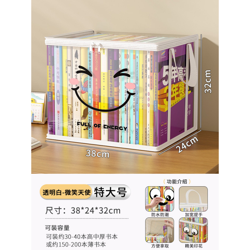• 흰색-특대형⭐항상 웃으세요 [두꺼운 고등학교 책 30~40권 정도 또는 얇은 책 150~200권 정도 수납 가능]