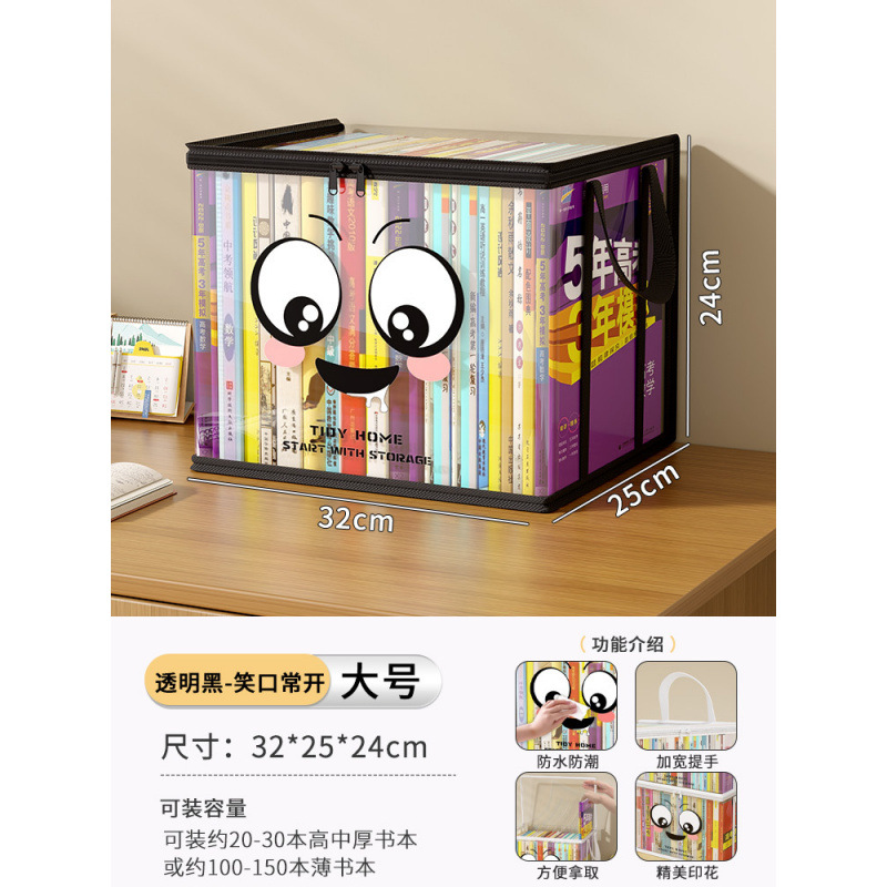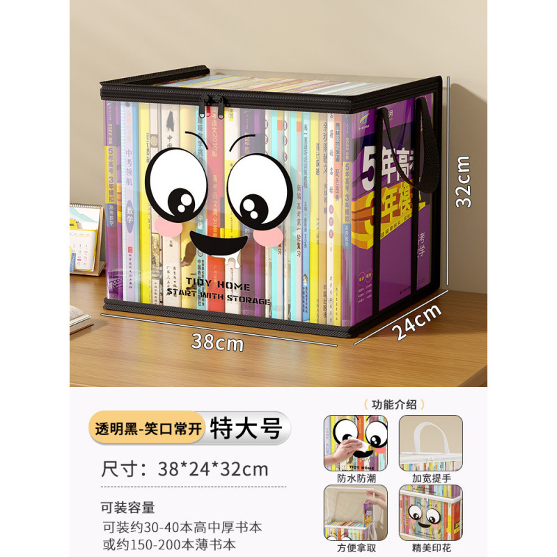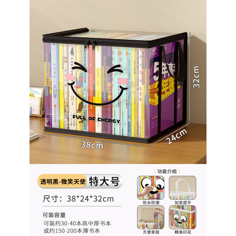 • 검정색-특대형❤항상 웃으세요 [두꺼운 고등학교 책 30~40권 정도 또는 얇은 책 150~200권 정도 수납 가능]