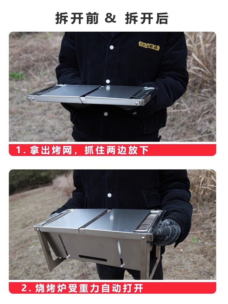스테인레스 스틸 캠핑 접이식 BBQ 스토브 가정용 야외 숯 구운 꼬치 무연 휴대용 Jie 접히는 구이 고양이스토어 가기