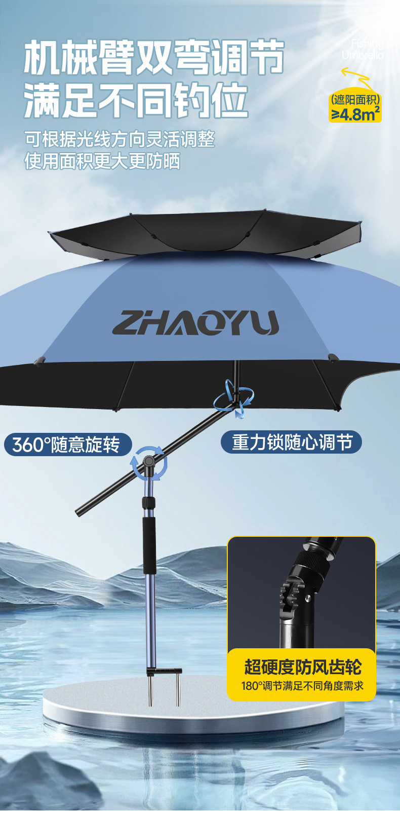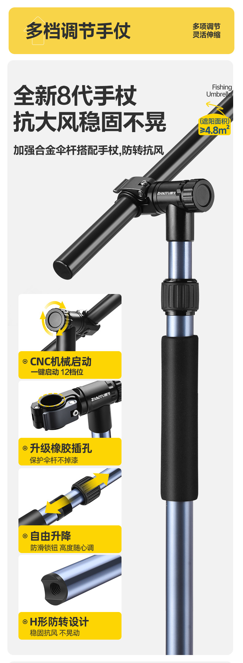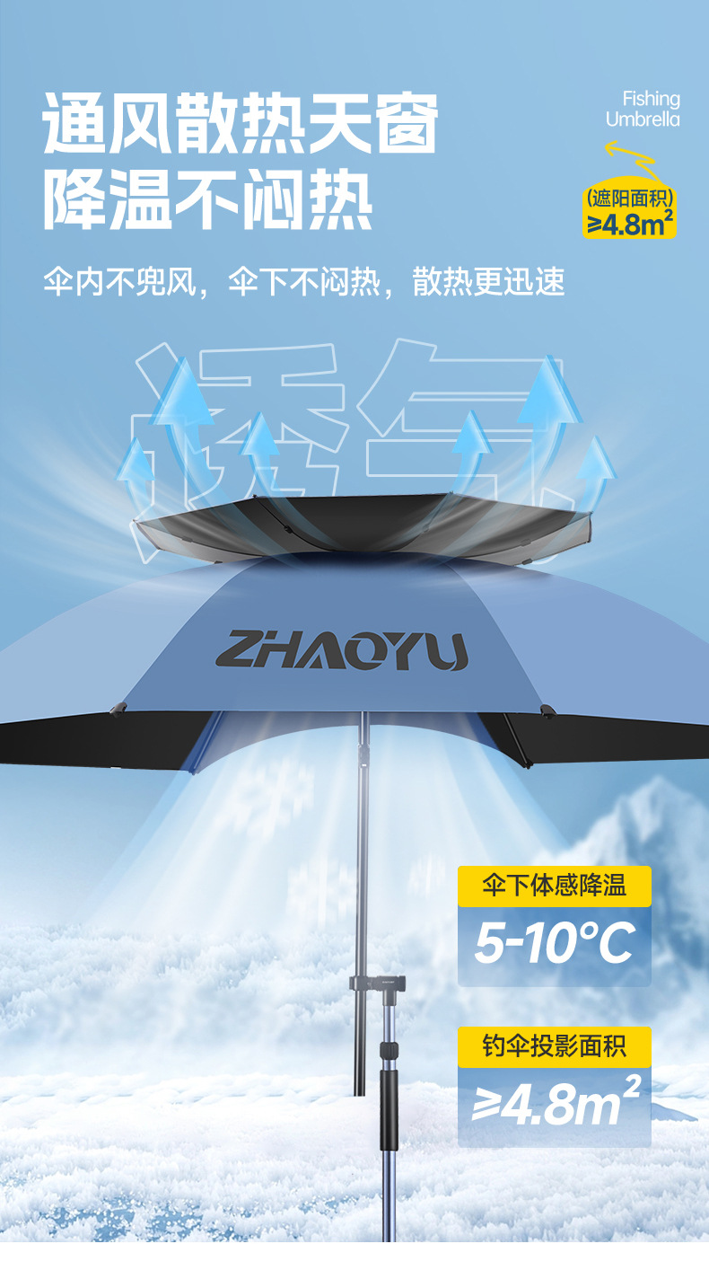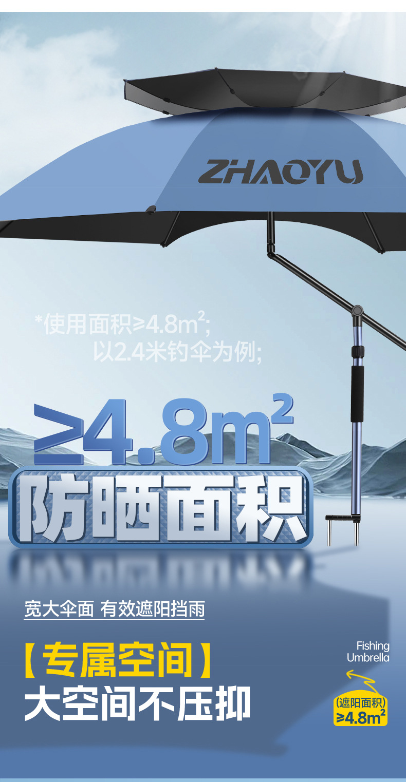 차오위 고급 낚시 우산 대형 유니버설 낚시 우산 2025 새로운 목발 차양 야외 캠핑 낚시스토어 가기