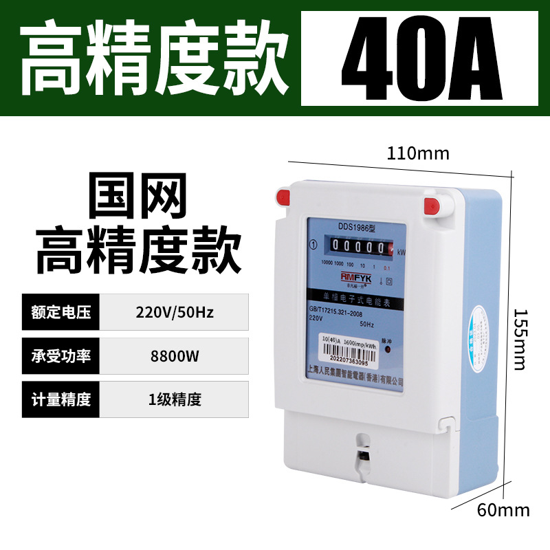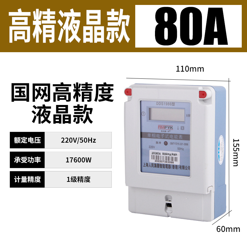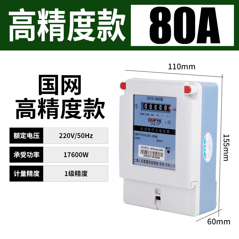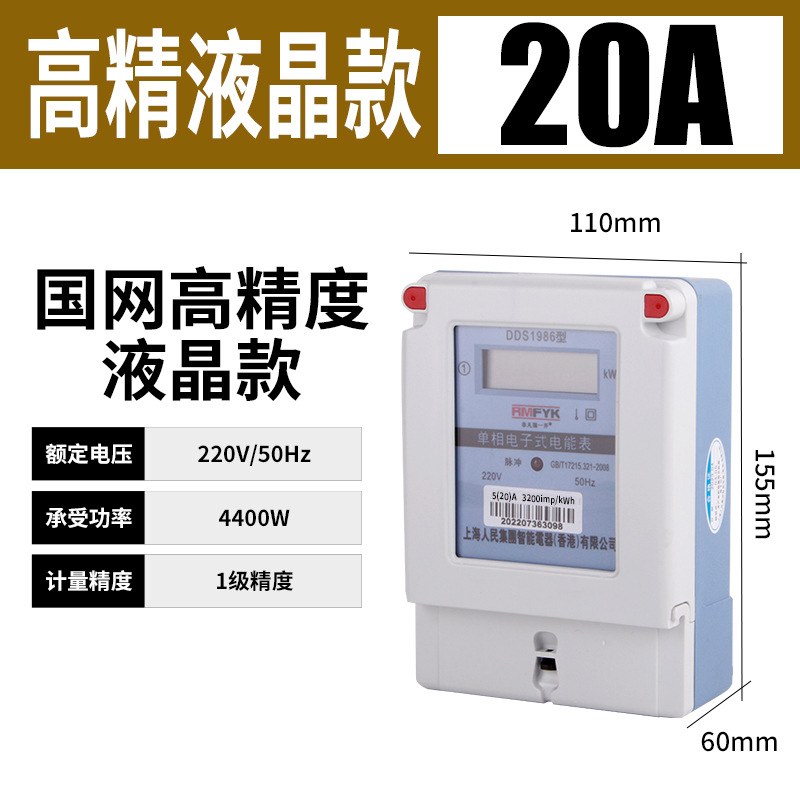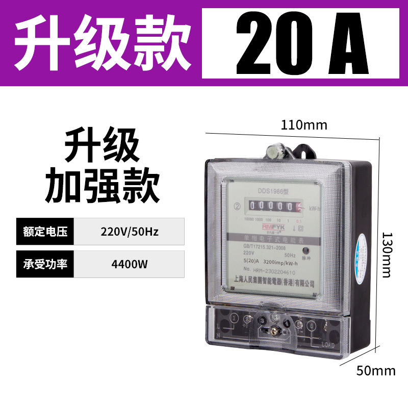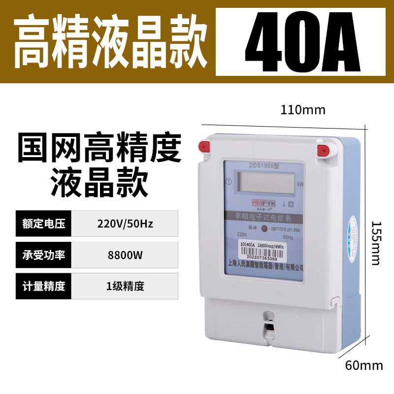 상하이 사람들의 단상 전기 미터 220v 가정용 전기 미터 임대 주택 전기 미터 미터 미터 2 상 전자 화재 미터스토어 가기