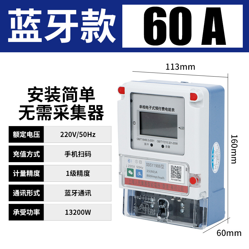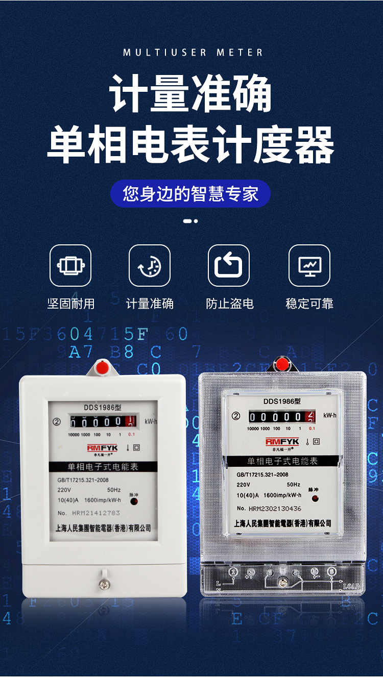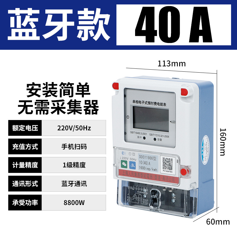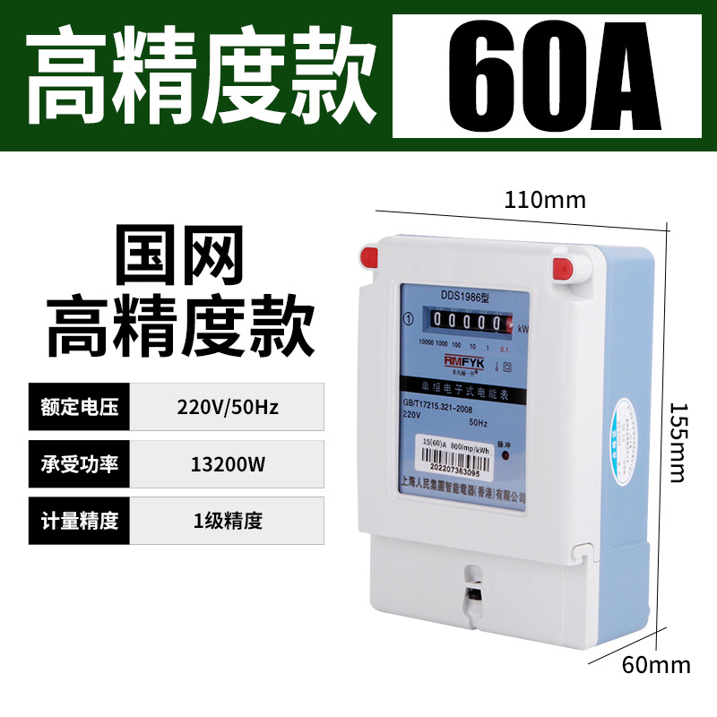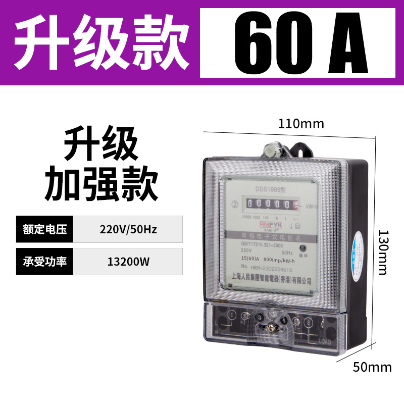 상하이 사람들의 단상 전기 미터 220v 가정용 전기 미터 임대 주택 전기 미터 미터 미터 2 상 전자 화재 미터스토어 가기