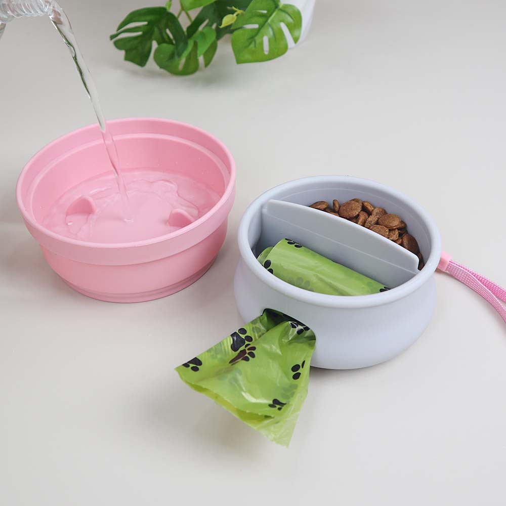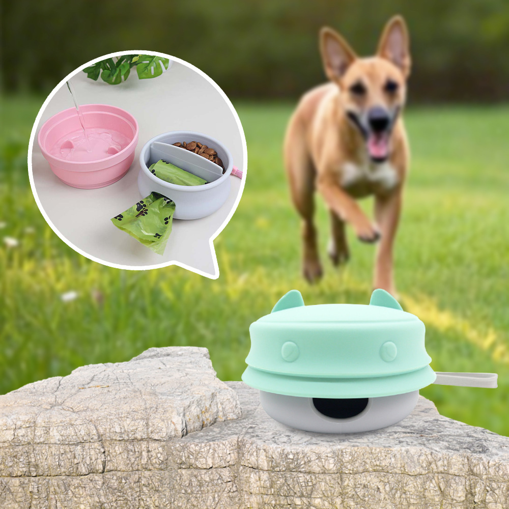 애완 동물 공급 3 대 1 곡물 저장 식품 피더 쓰레기 봉투 보관 개 함께 컵 휴대용 상자 실리콘 그릇스토어 가기