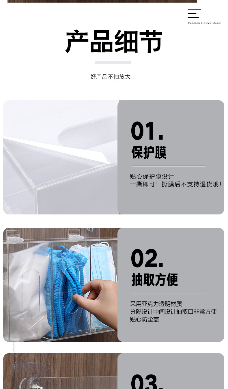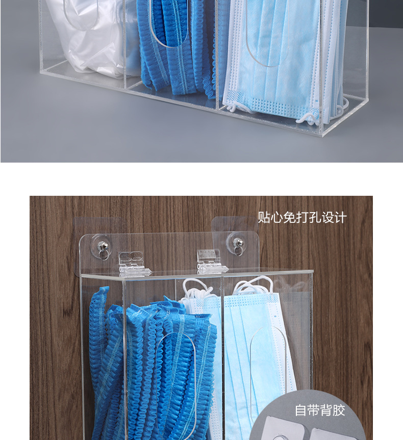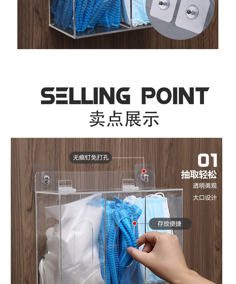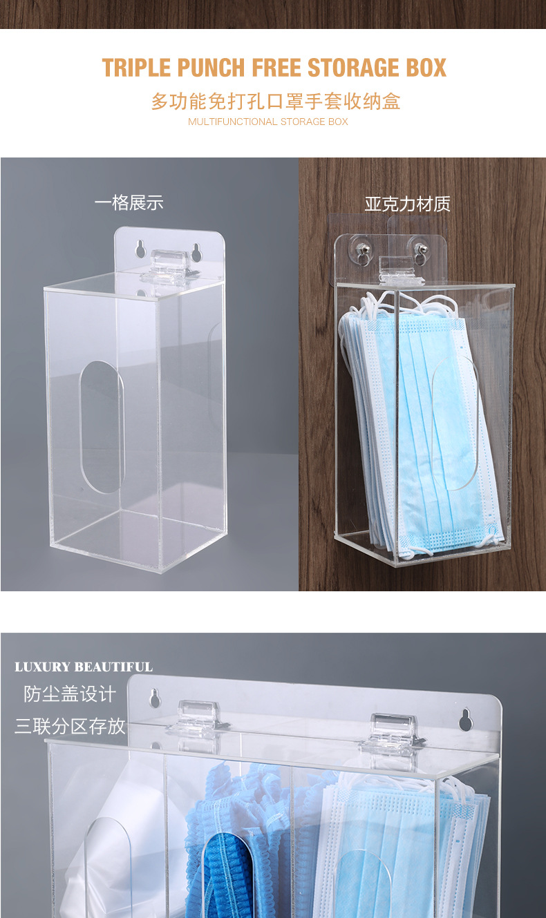 일회용 장갑 저장 상자 휴대용 벽 교수형 펀치 무료 투명 아크릴 신발 커버 자기 흡입 마스크 모자 마무리