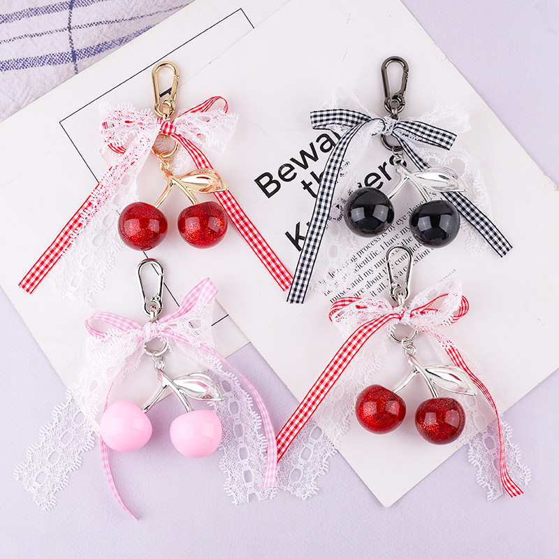 귀여운 체리 키 체인 펜던트 레이스 활 장식 소녀의 하트 Ins 스타일 크리에이티브 교수형 멀티 컬러 옵션스토어 가기