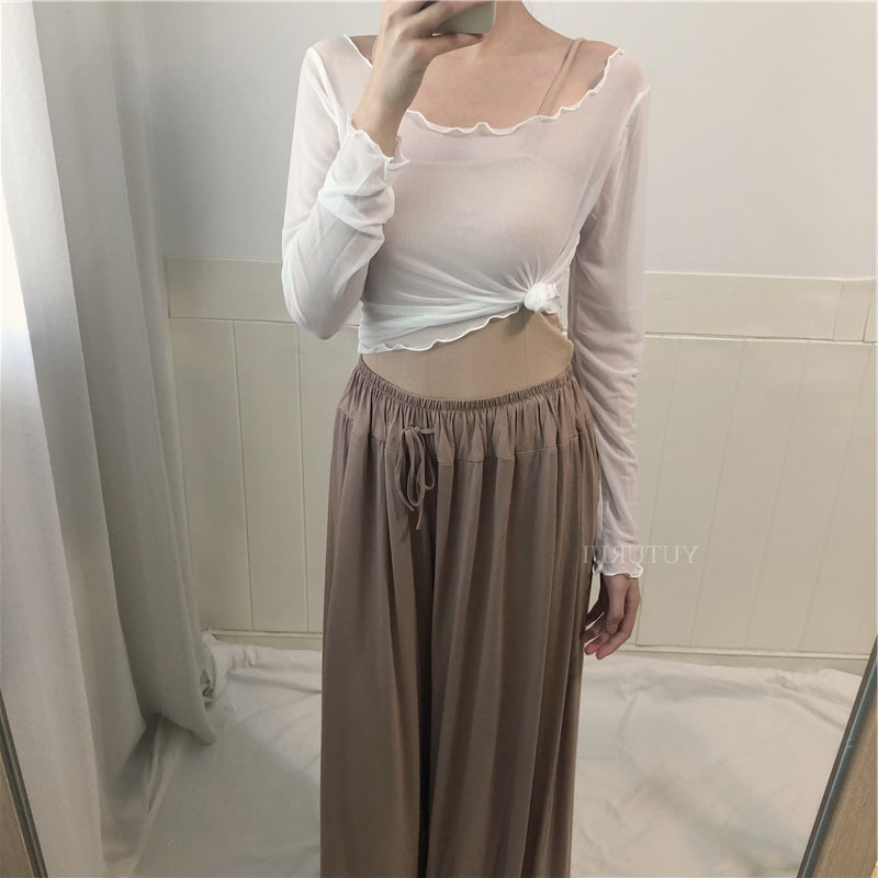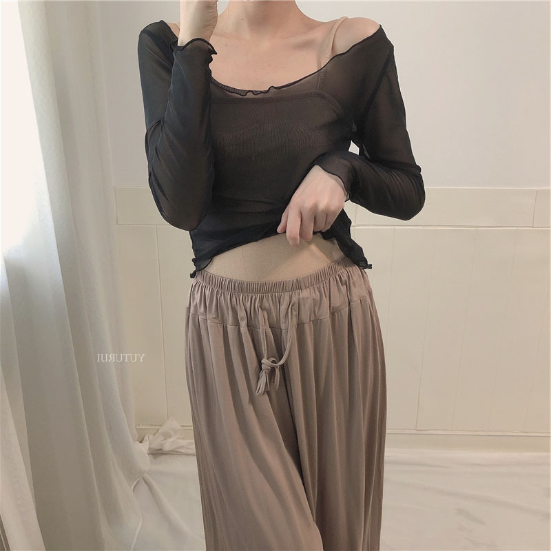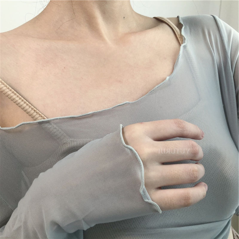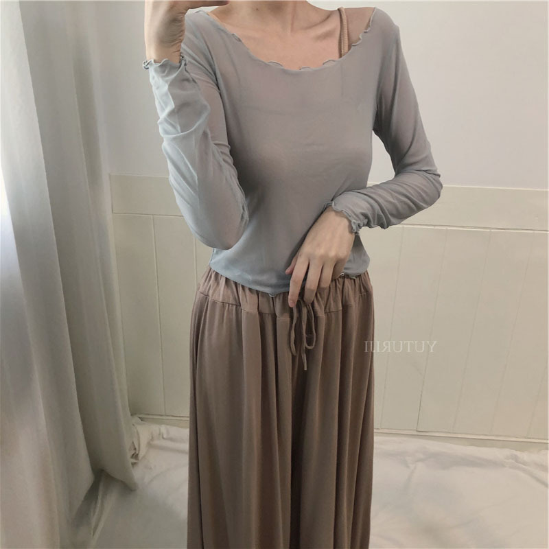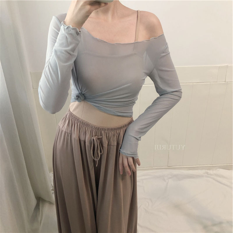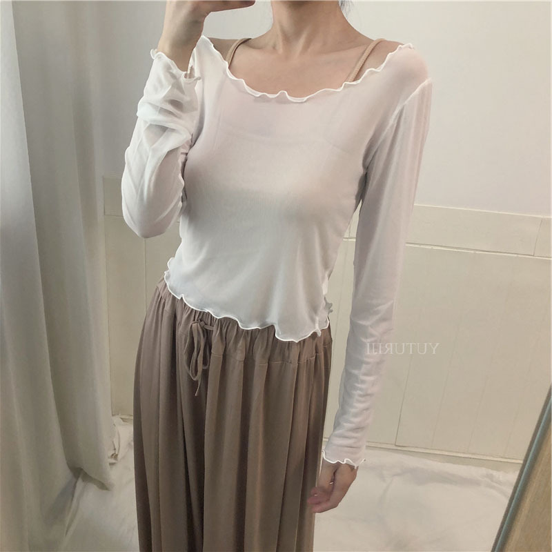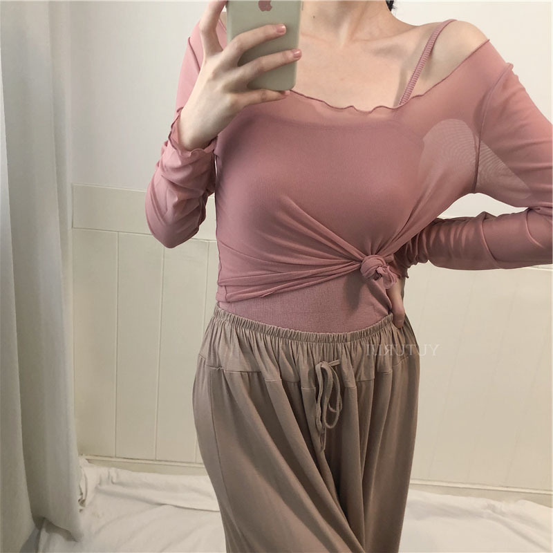 낮은 칼라 메쉬베이스 셔츠 여성의 봄과 가을 큰 목 얇은 셔츠 참조 긴 소매 클래식 댄스 레이스 탑