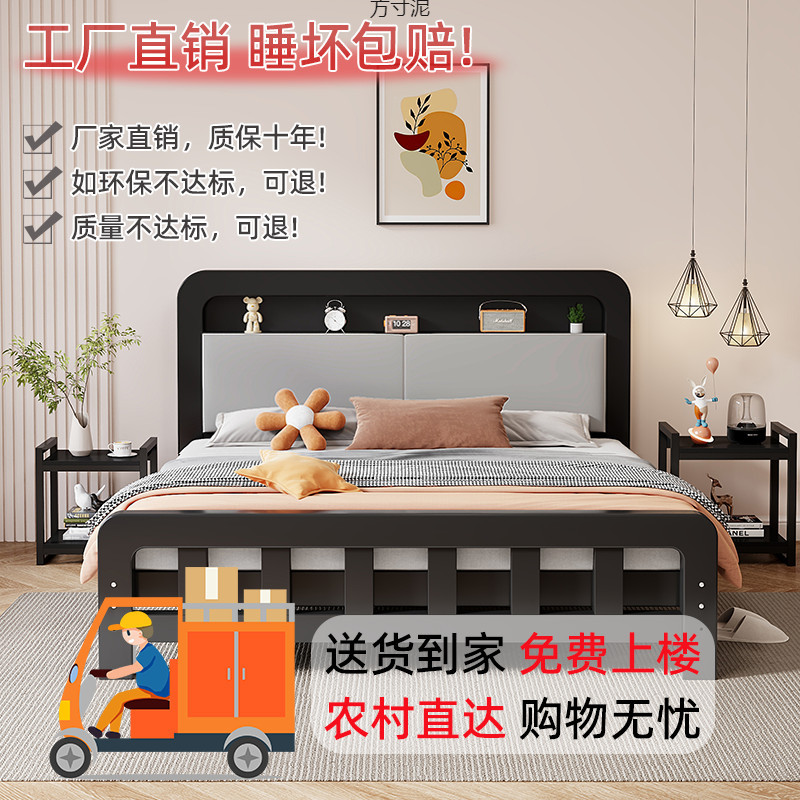 유럽식 철제 침대 1.8 미터 강화 두꺼운 더블 침대 1 싱글 침대 스테인레스 스틸 임대 주택 철 침대 도매