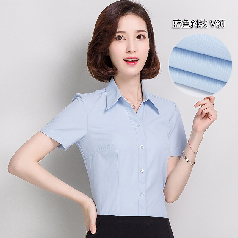 화이트 셔츠 여성 전문 봄 가을 여름 반팔 느슨한 작업복 포트리스 플러스 사이즈 작업복 여성용 흰색 셔츠 둥근 목