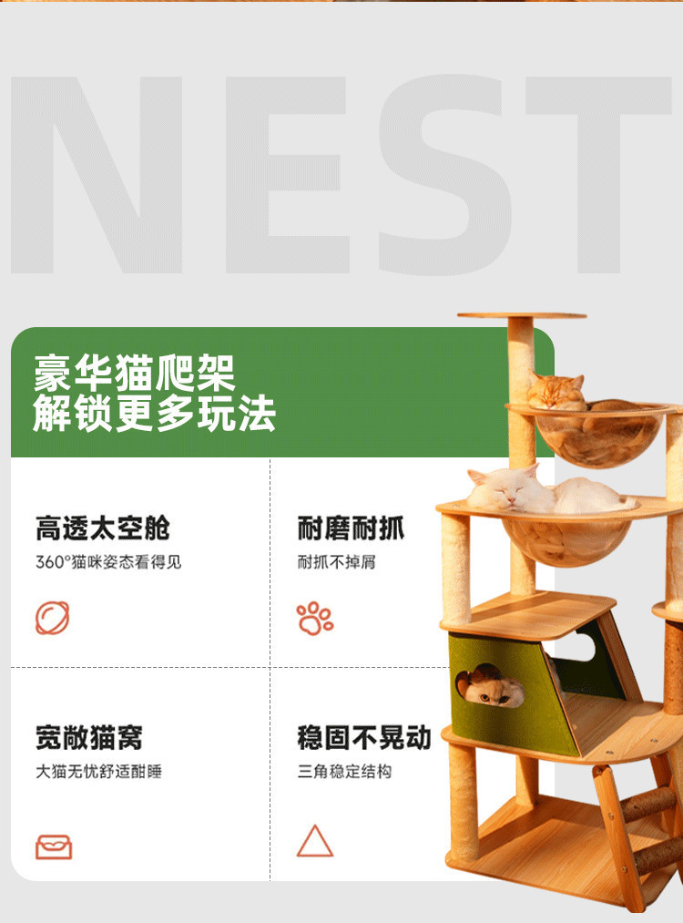 XZ 고양이 등반 프레임 그물 기념 공간 캡슐 단단한 나무 큰 고양이 둥지 사계절 통합 선반 고양이 점프 플랫폼 잡기 열 고양이 빌라