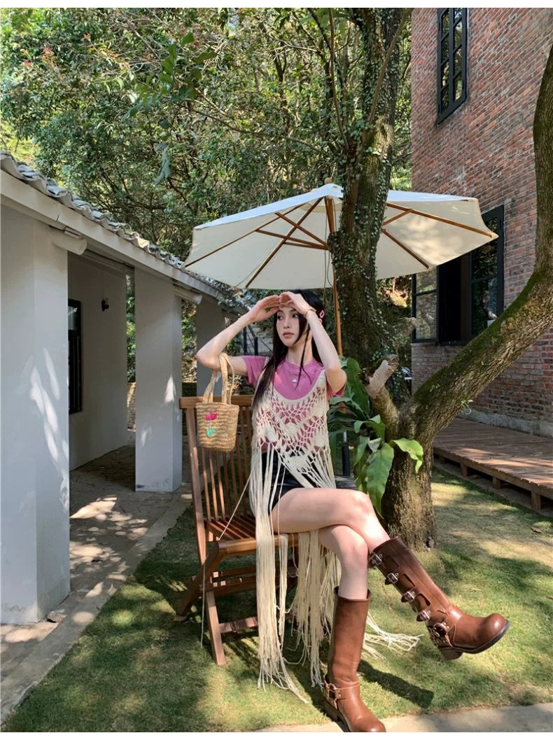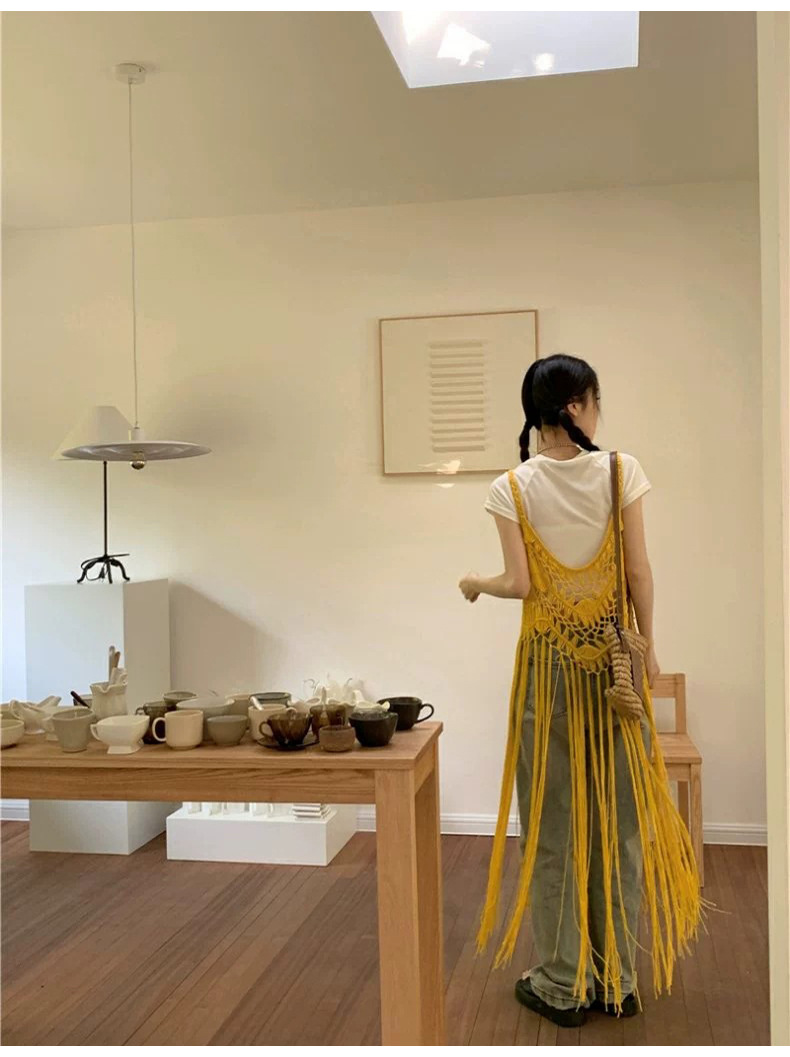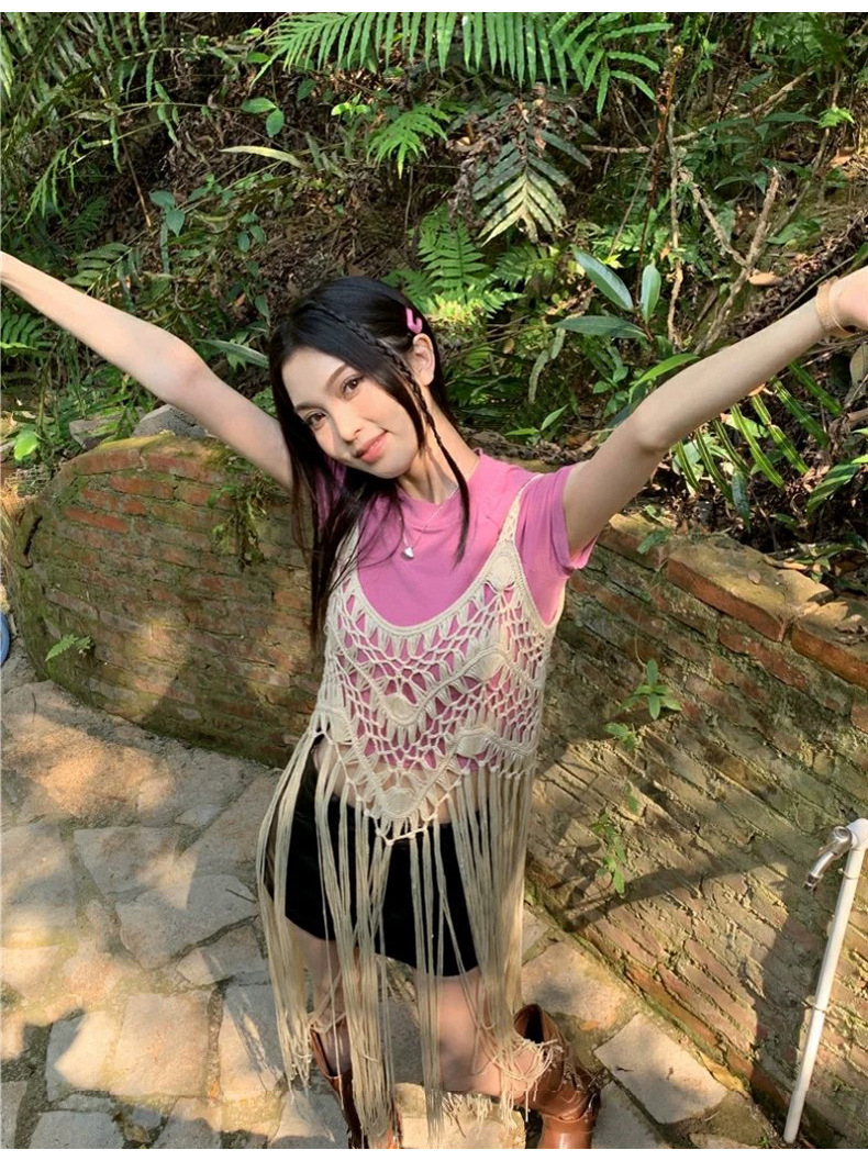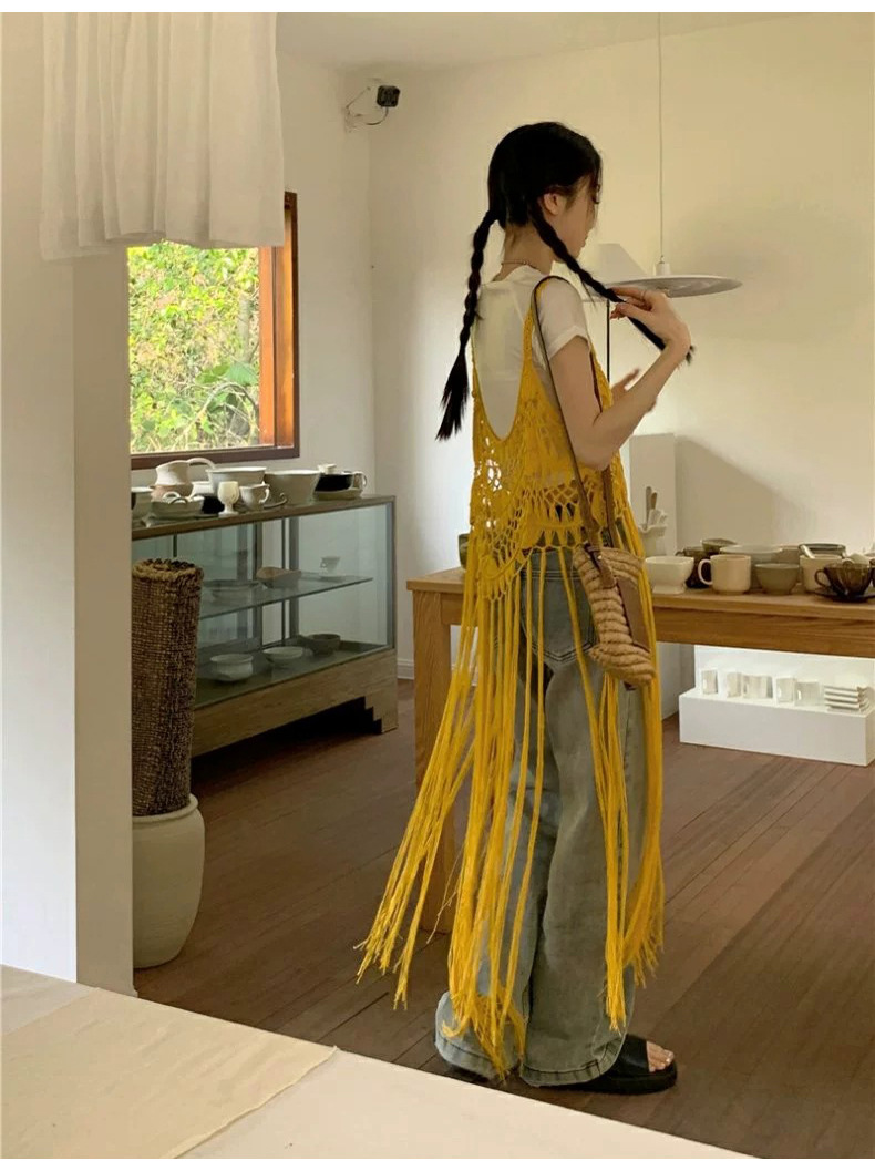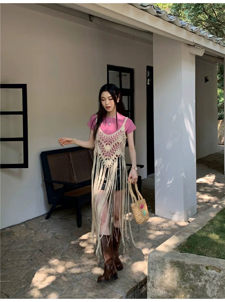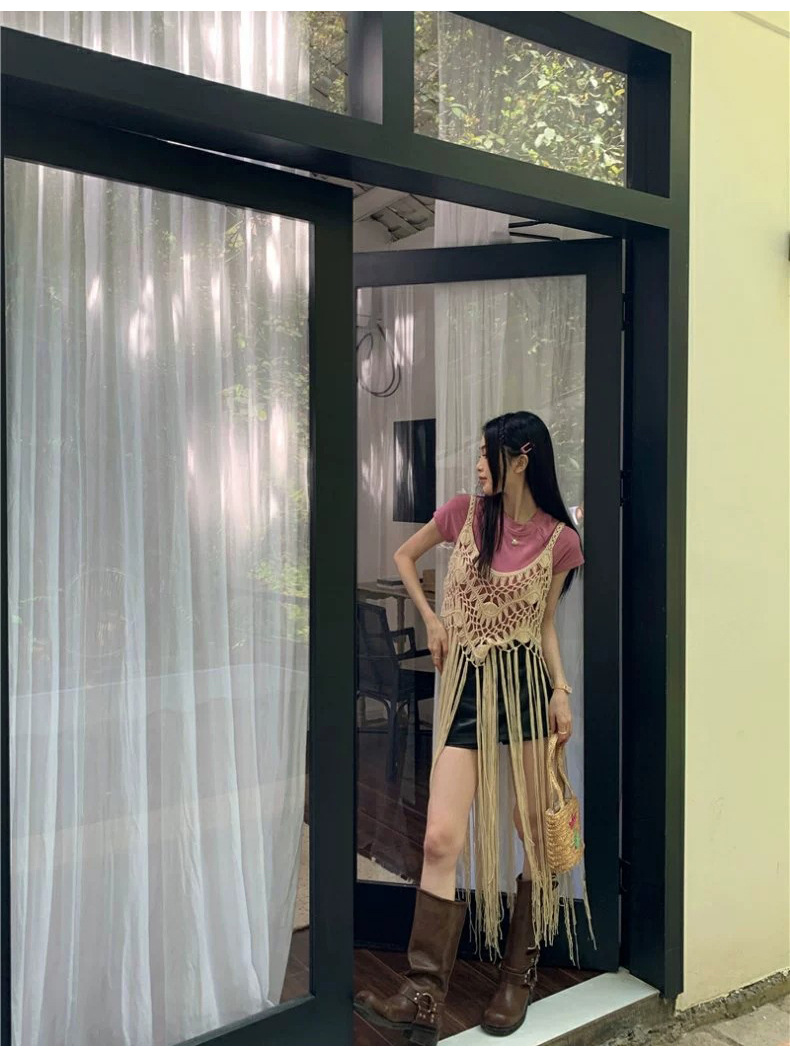 봄 2025 새로운 패션 디자인 센스 수제 크로 셰 티드 술 보헤미안 스타일 슬링 외부 셔츠 원피스 여성스토어 가기