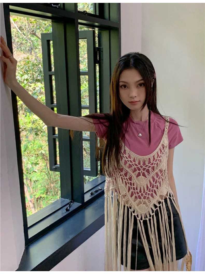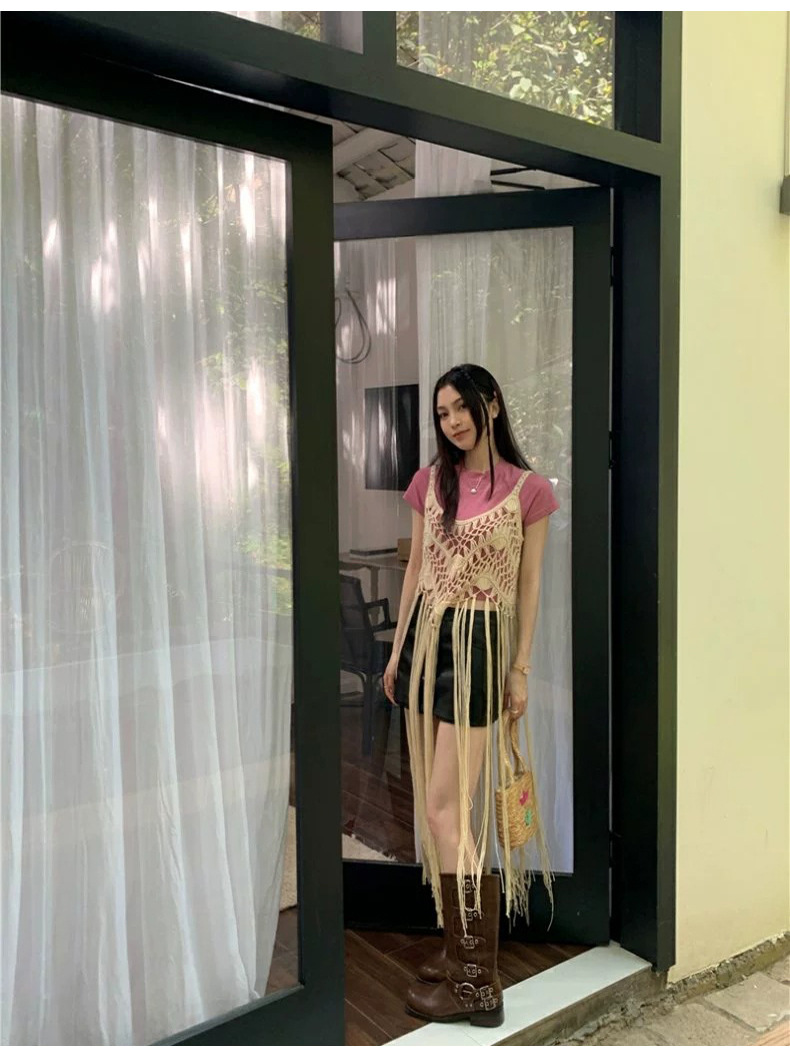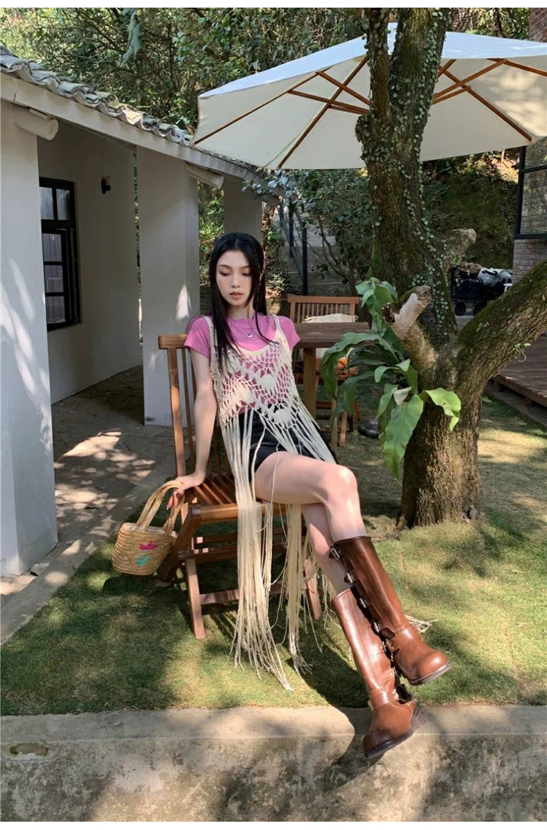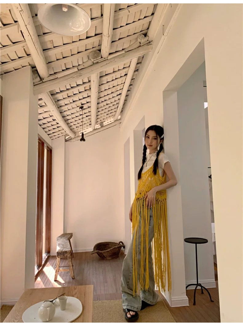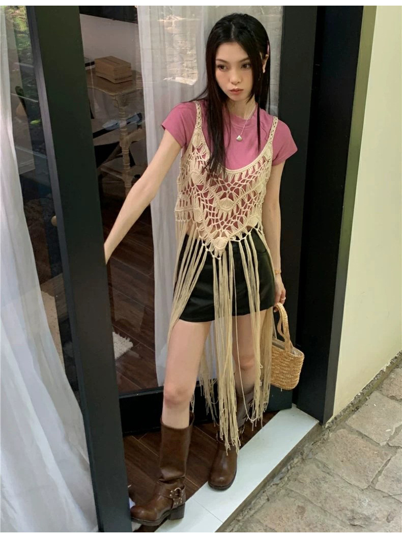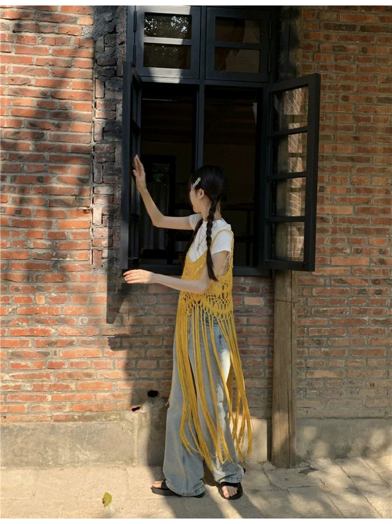 봄 2025 새로운 패션 디자인 센스 수제 크로 셰 티드 술 보헤미안 스타일 슬링 외부 셔츠 원피스 여성스토어 가기