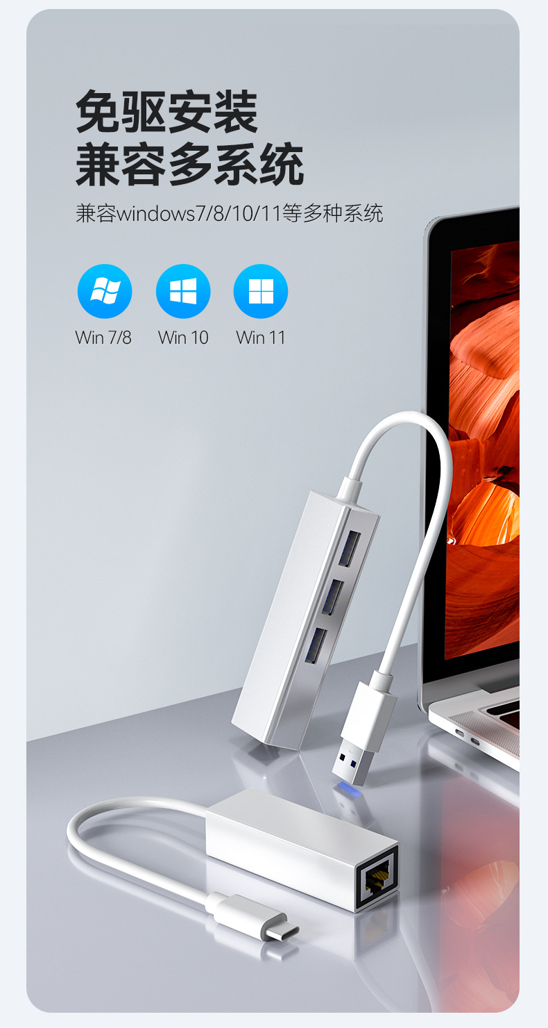 네트워크 카드 TYPEC-100M 기가비트 네트워크 포트 허브 유선 이더넷 외부 드라이버가 없는 USB 네트워크 카드 네트워크 변환