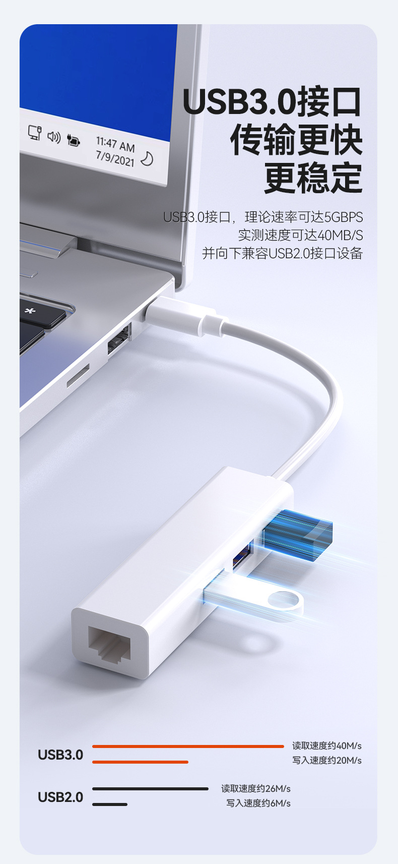 네트워크 카드 TYPEC-100M 기가비트 네트워크 포트 허브 유선 이더넷 외부 드라이버가 없는 USB 네트워크 카드 네트워크 변환스토어 가기